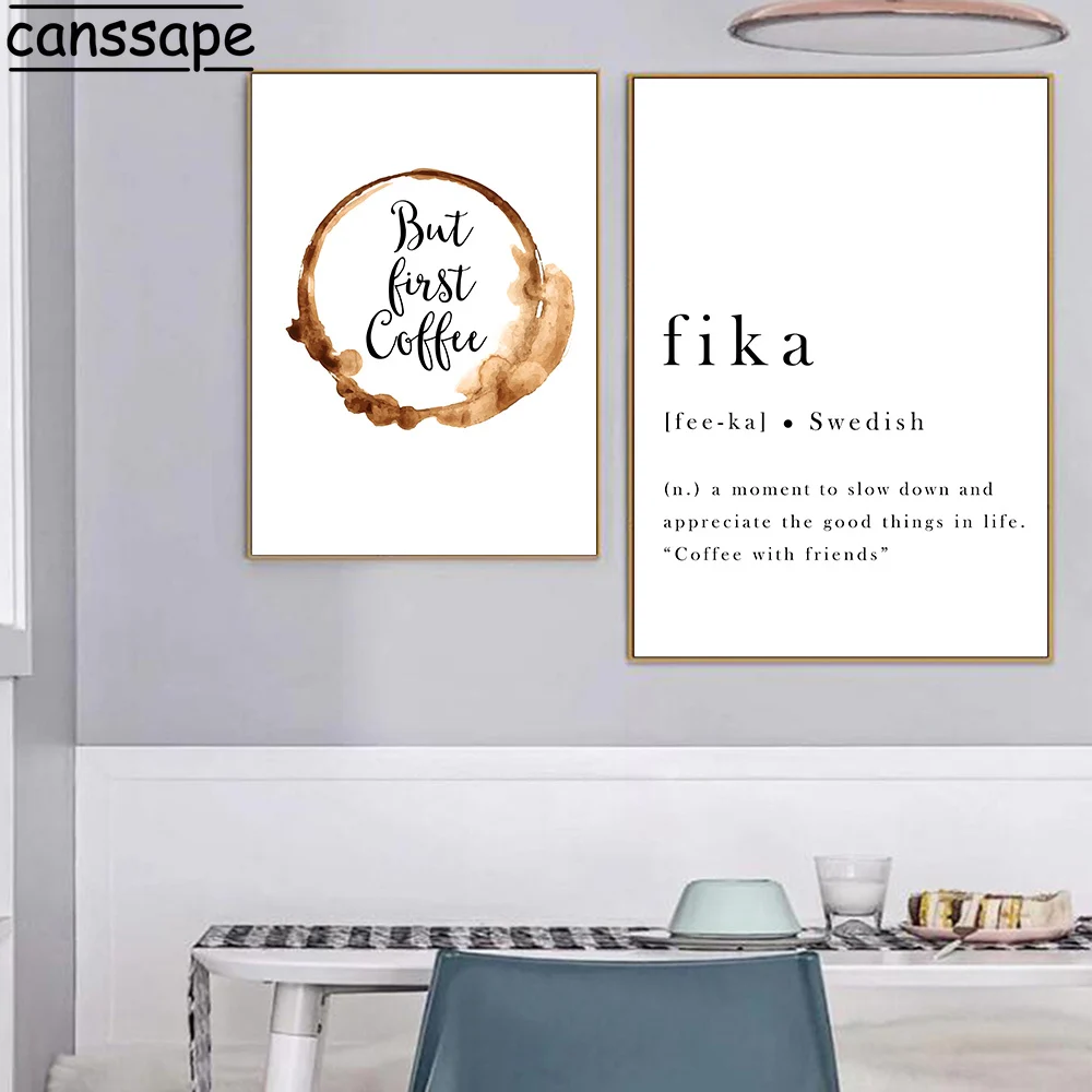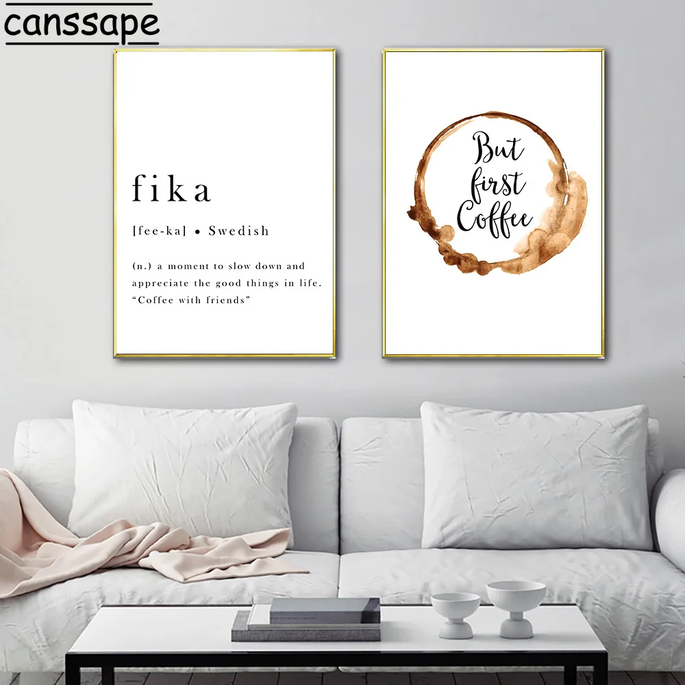 Вдохновляющий постер Fika шведский цитата, настенная живопись на холсте, современные постеры и принты, скандинавские картины, декор для спальни