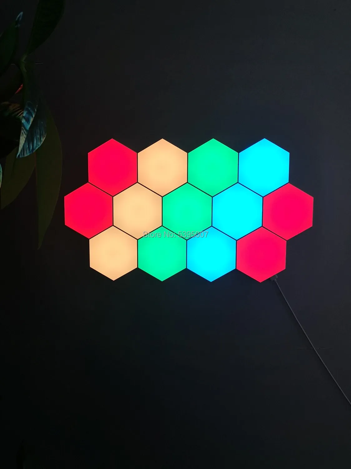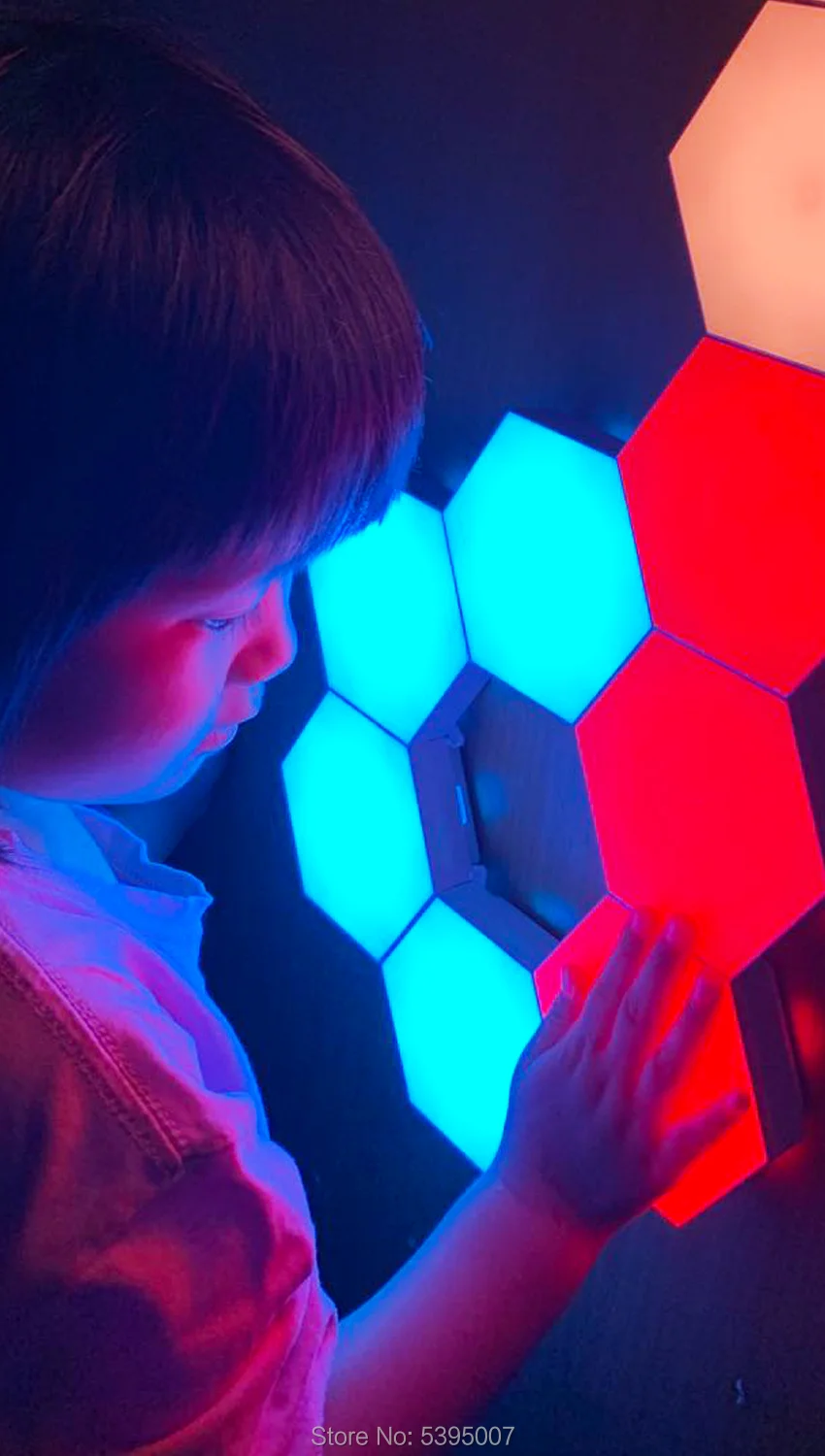 Модульный шестигранный светильник RGB с сенсорным управлением, с дистанционным управлением, цветная Квантовая сотовая лампа, умное Сращивание, светодиодные геометрические панели