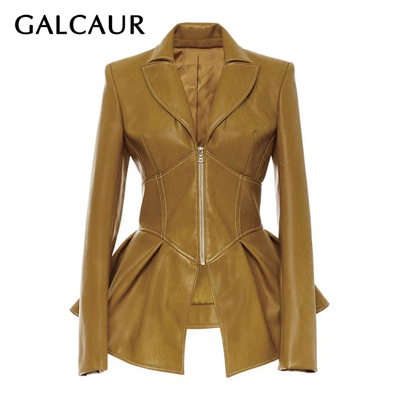 Женская Асимметричная куртка GALCAUR, Лоскутная Туника с длинным рукавом и отложным воротником, в стиле мотоциклистов, осенняя, 2020