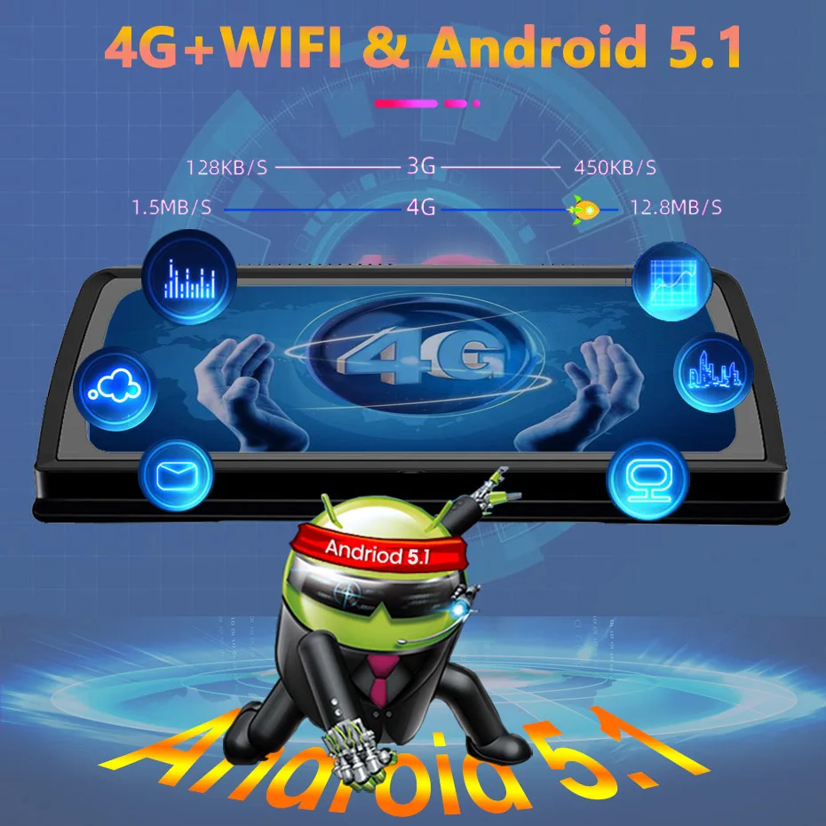 Четырехъядерный 1,4 ГГц высокопроизводительный процессор включает Android 5,1 интеллектуальных систем. Это делает Автомобильный видеорегистратор более быстрым. Вы можете скачать любое приложение из магазина google play.