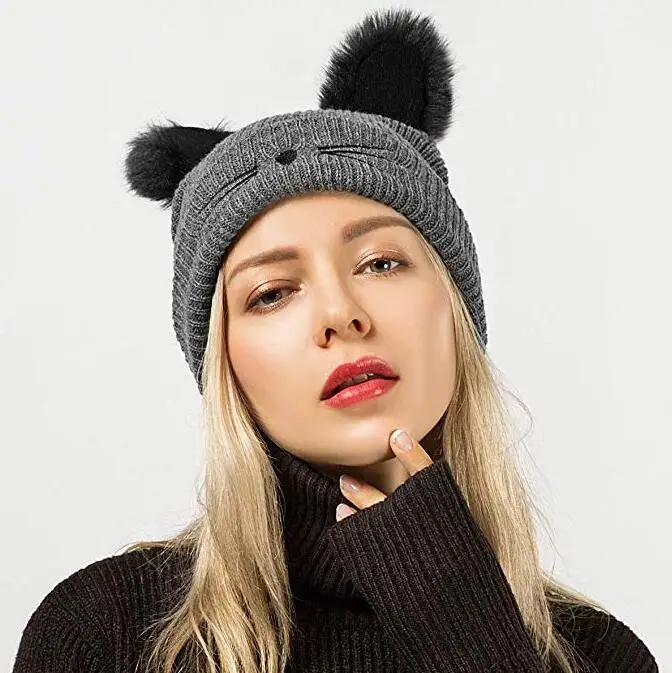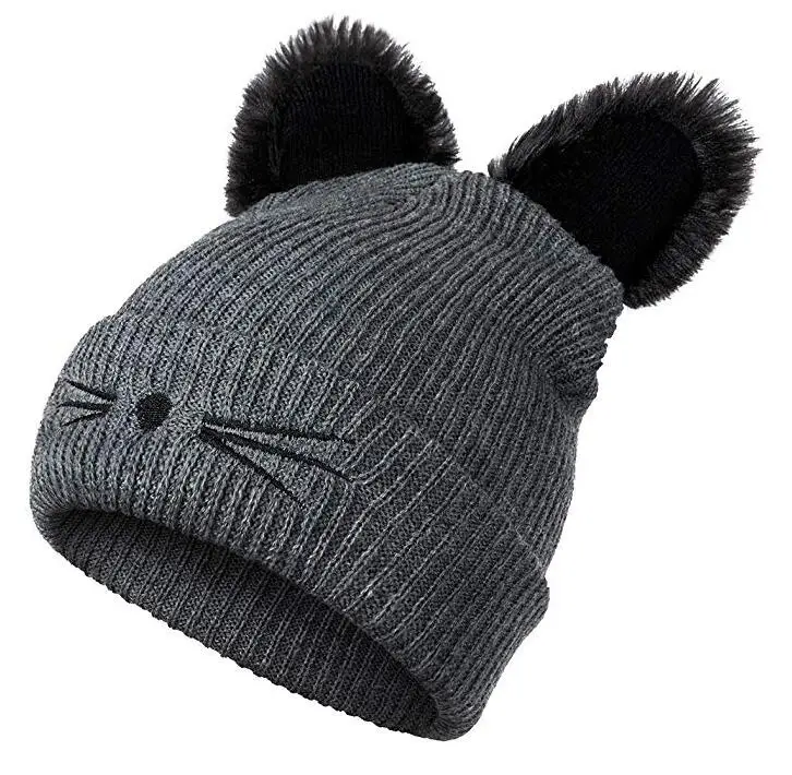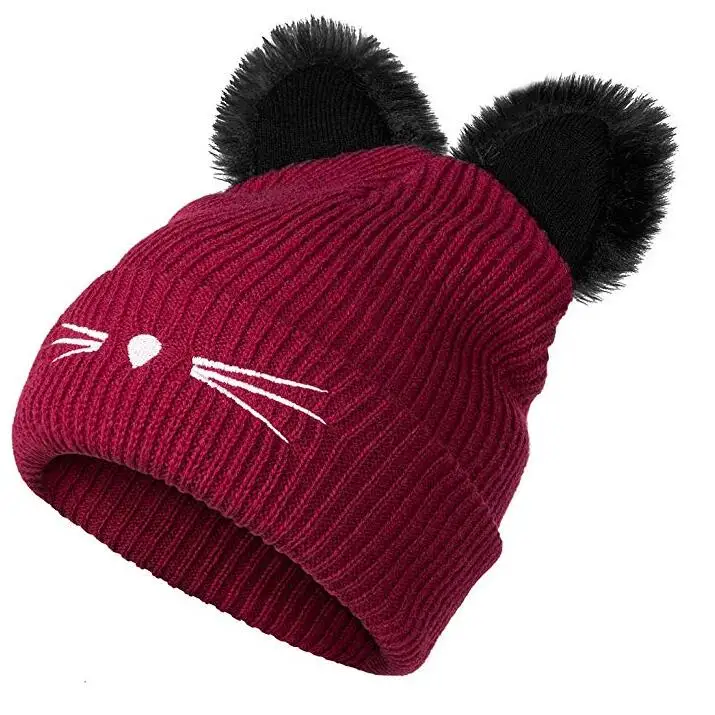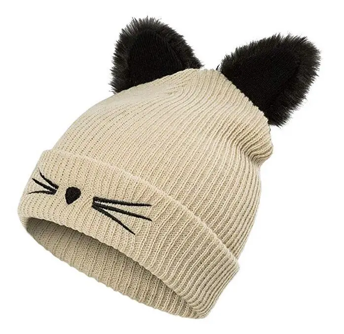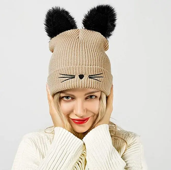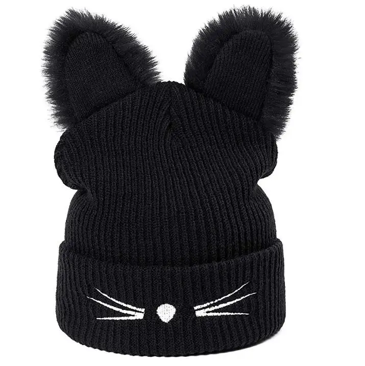 Зимняя Модная вязаная шапка с кошачьими ушками, теплые шапки, шапка для женщин, теплая вязаная крючком шапка с вышивкой, вязаные шапочки шерстяные, аксессуары для шапок