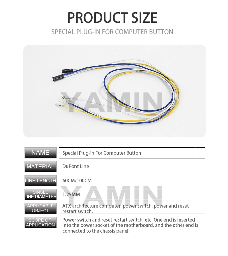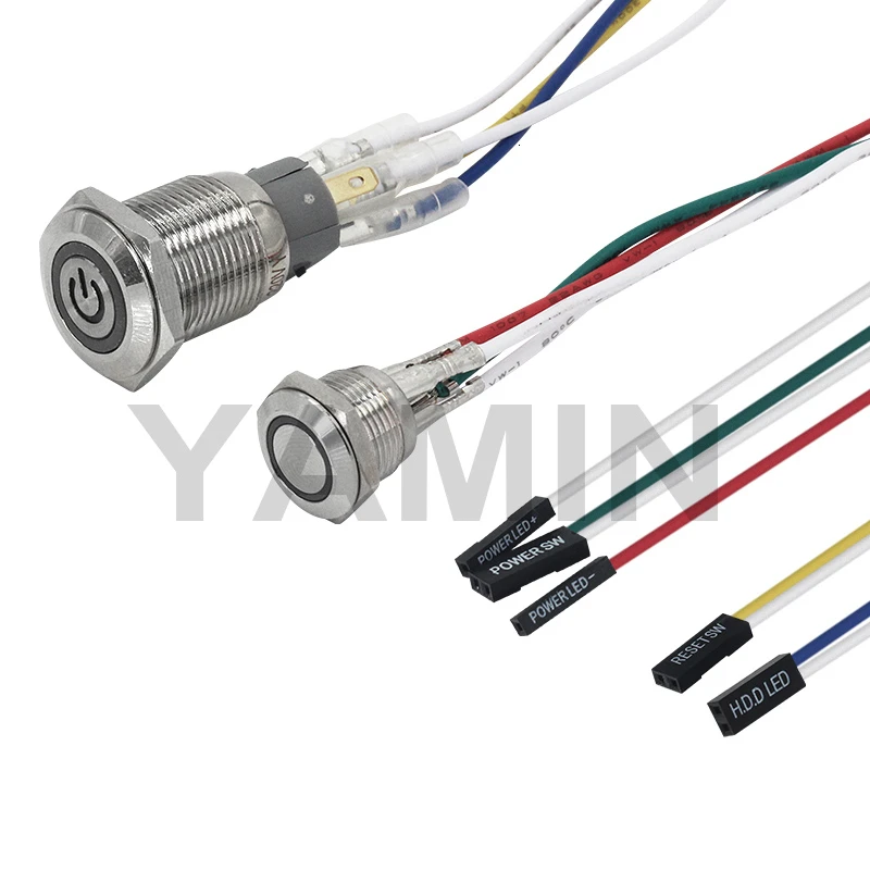 Диаметр описывает видимую головку кнопки. Поставляется с тремя съемными разъемами с разъемами (одна 2 лопата/2 штыря dupont и две 1 Лопата на 1 штырь dupont), которые должны подходить к любому разъему материнской платы.