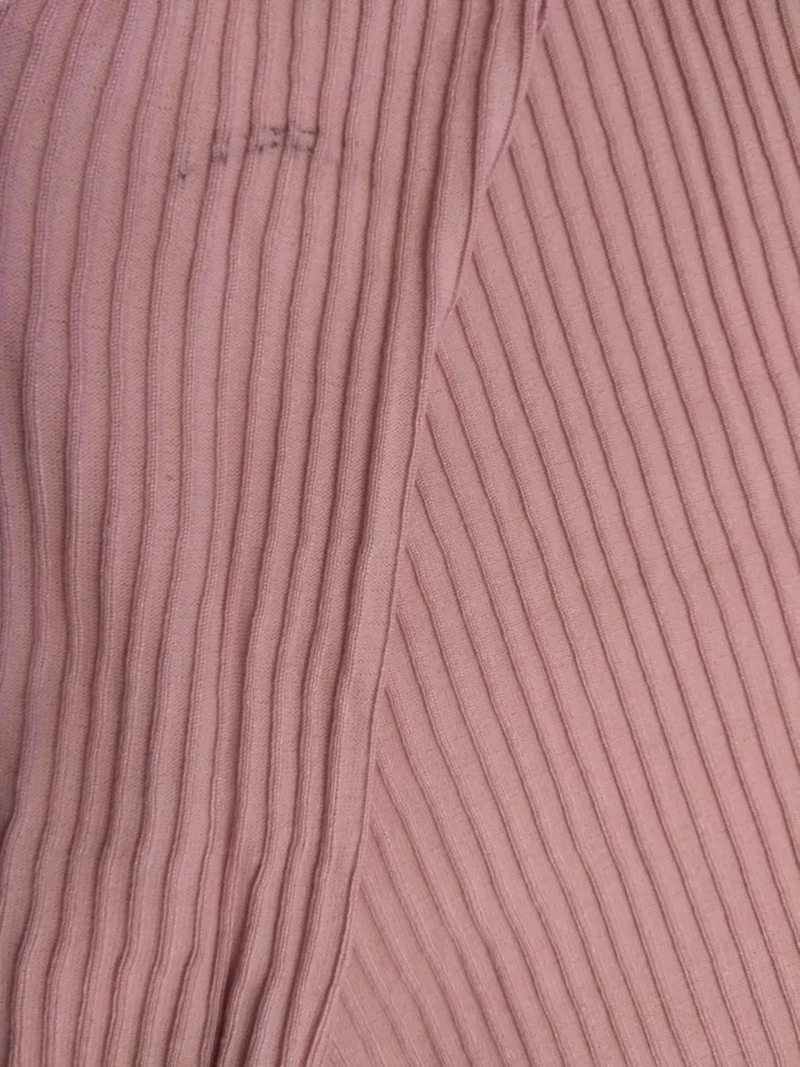 Материал плотный, синтетика. Нет никаких бирок с составом и рекомендациями по уходу. В реальности смотрится не так как на модели. Объем груди всего 70 см. Ткань хорошо тянется, но напуска не будет (в обтяг). На моем платье был брак в прострочке и грязный рукав. Ремень выглядит дёшево, на талию 78 см болтается (туже дырочки нет).