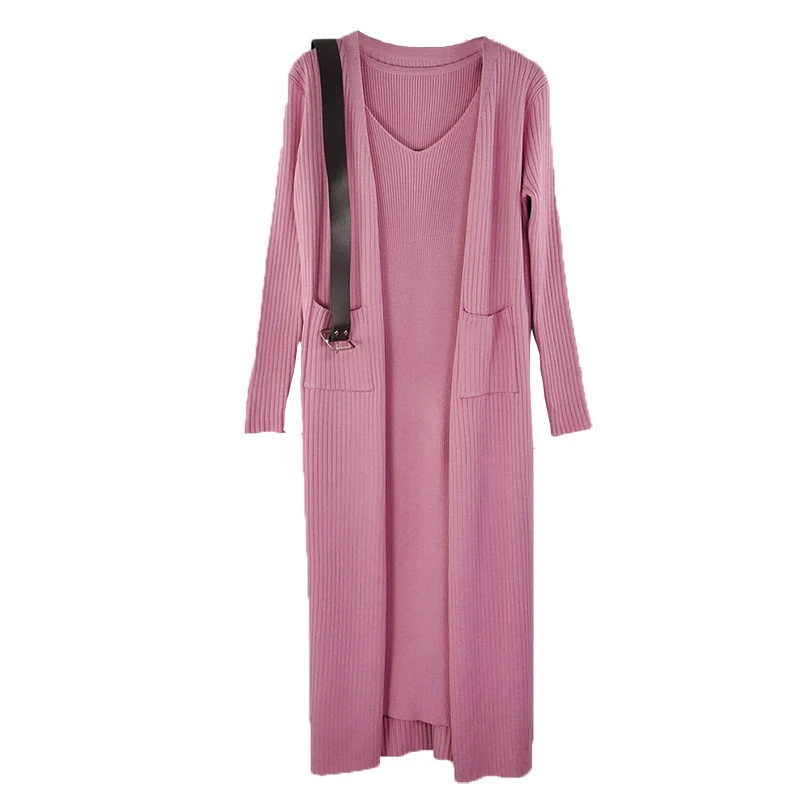 Женский вязаный спортивный костюм MVGIRLRU, Осенний вязаный кардиган, свободный свитер, пальто с поясом