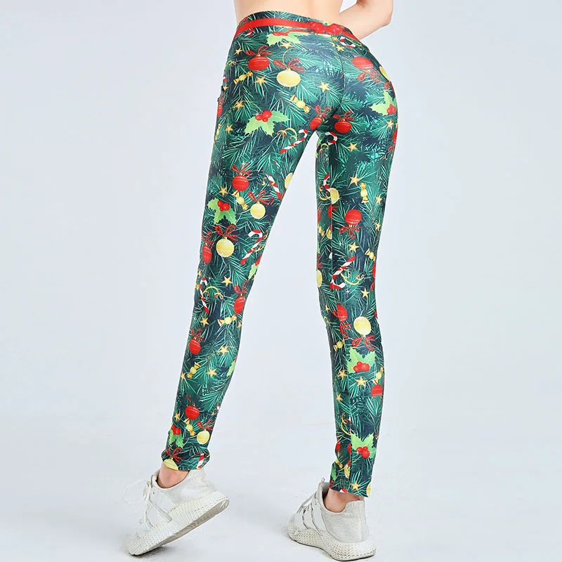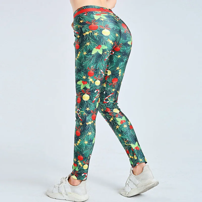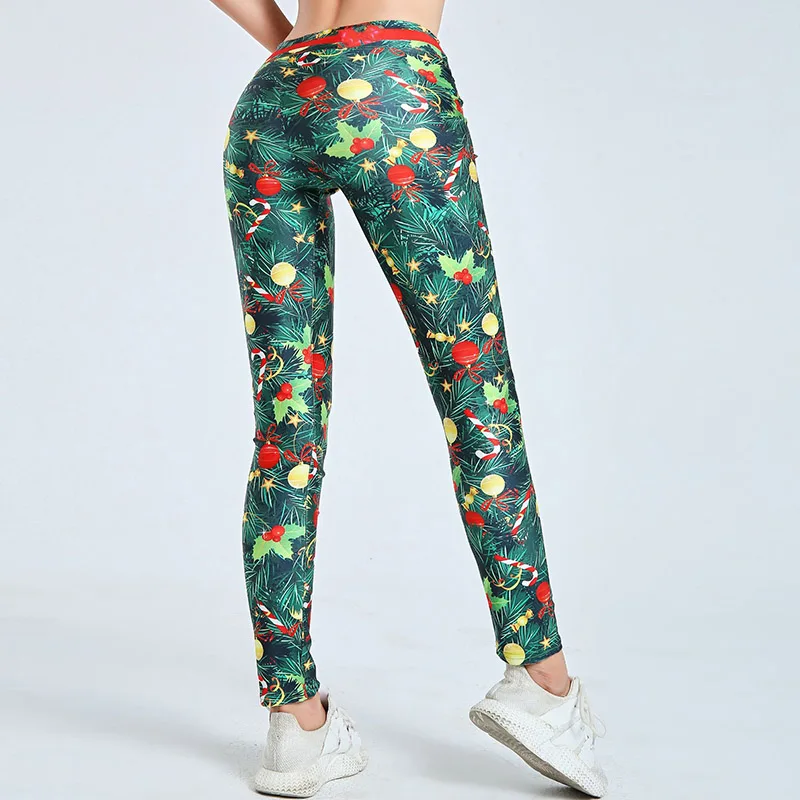 Рождественские леггинсы, женские рождественские подарки, леггинсы с мультяшным принтом, джеггинсы с высокой талией для тренировок и фитнеса, вязаные штаны