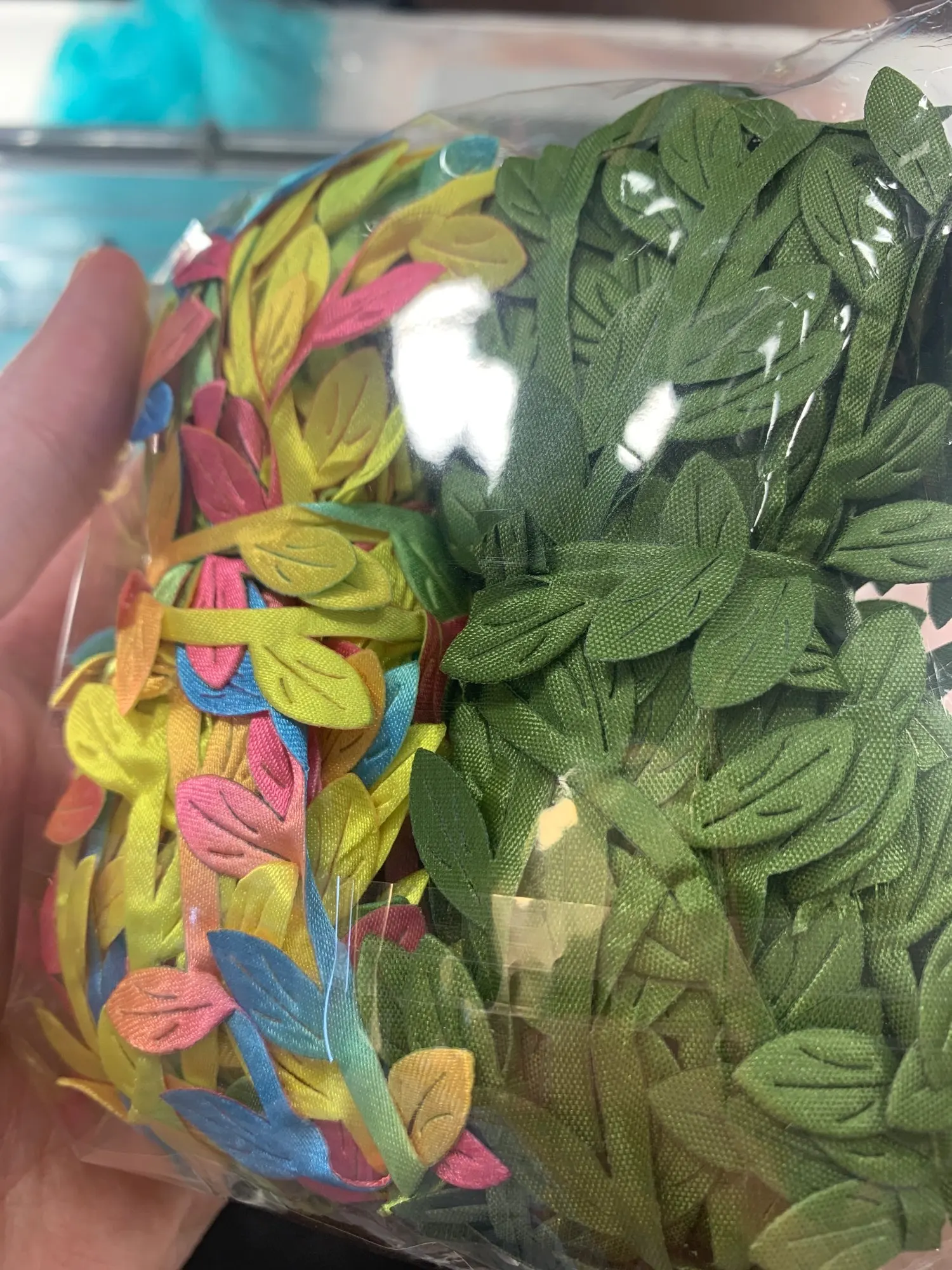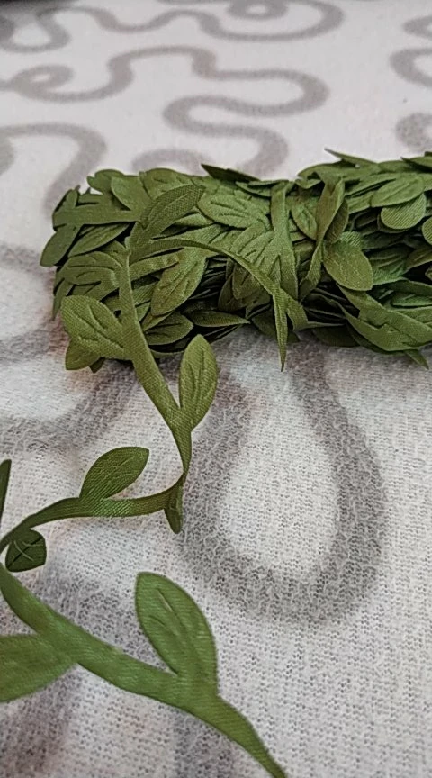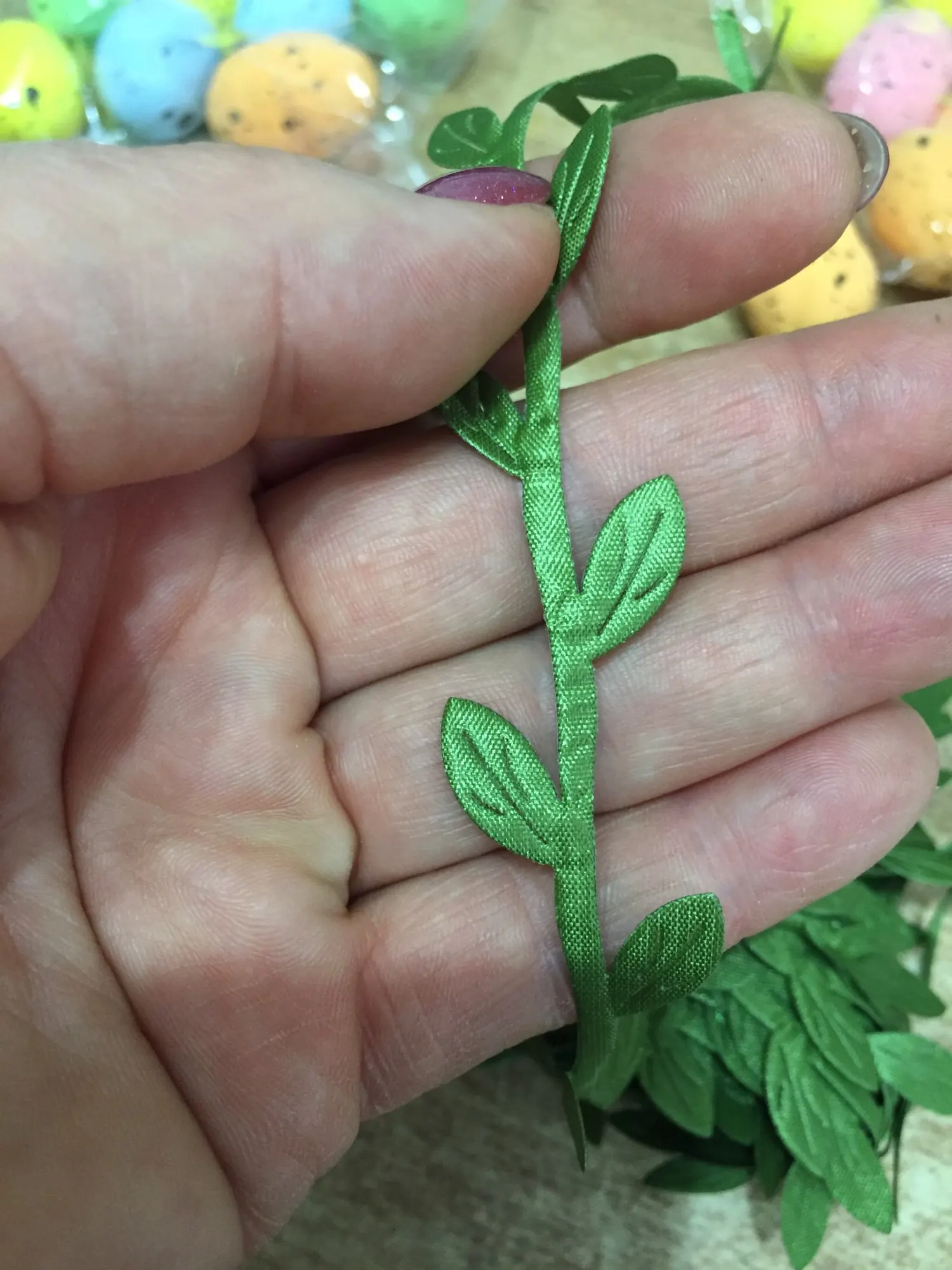 Нормальная тесемка, с листиками. Чёт я думала более жесткая она, но это я не читала особо характеристики. Для поделок с детками ок.