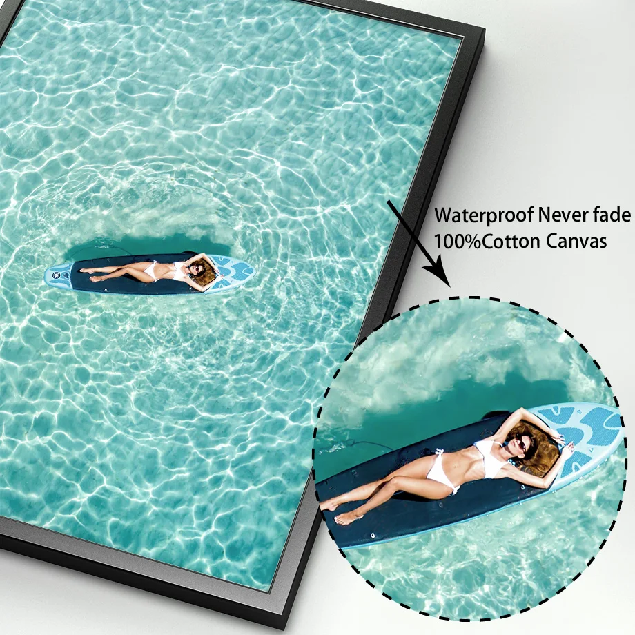 Серфинг девушка мост море пляж пейзаж настенная живопись холст карт...