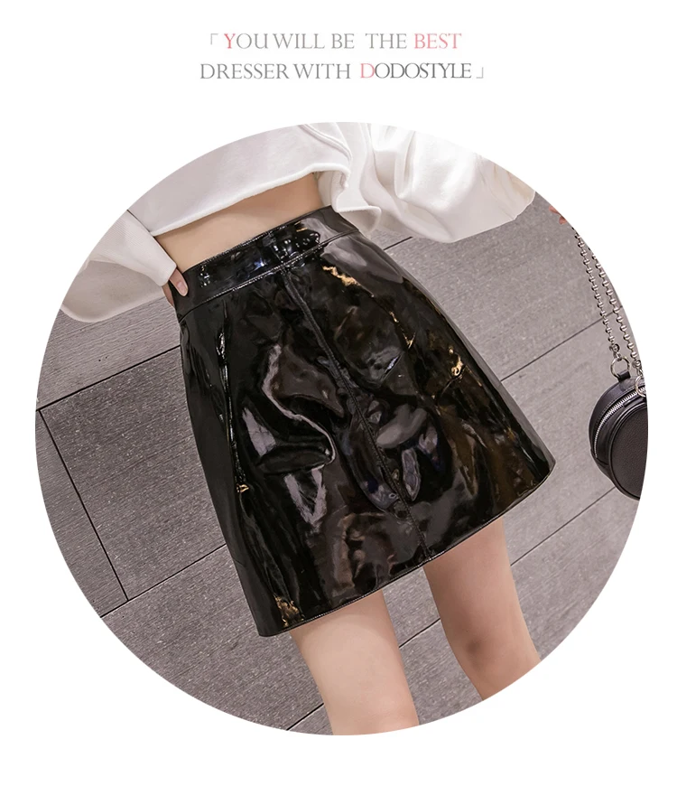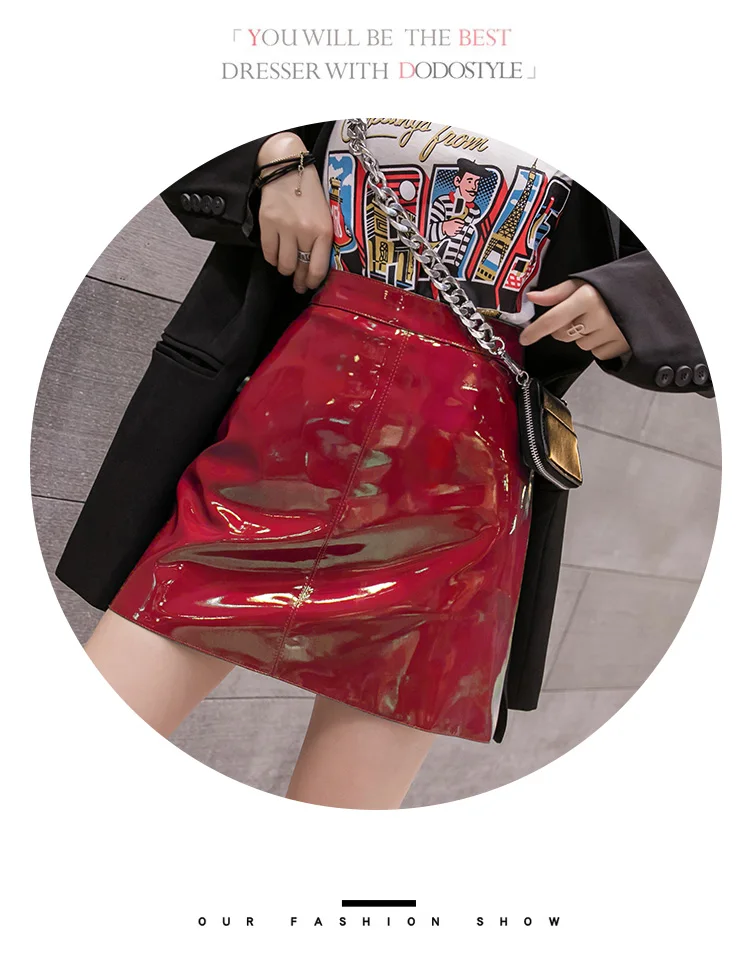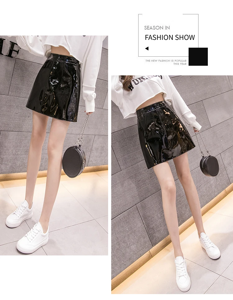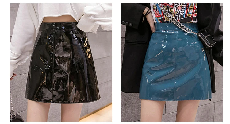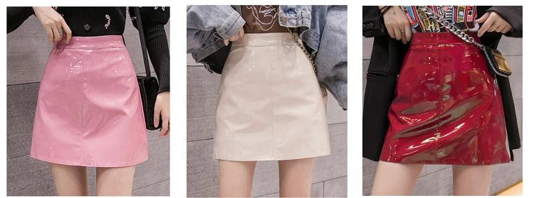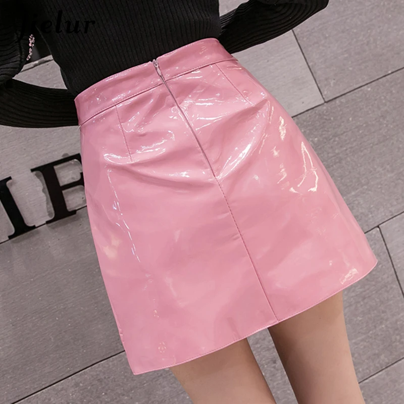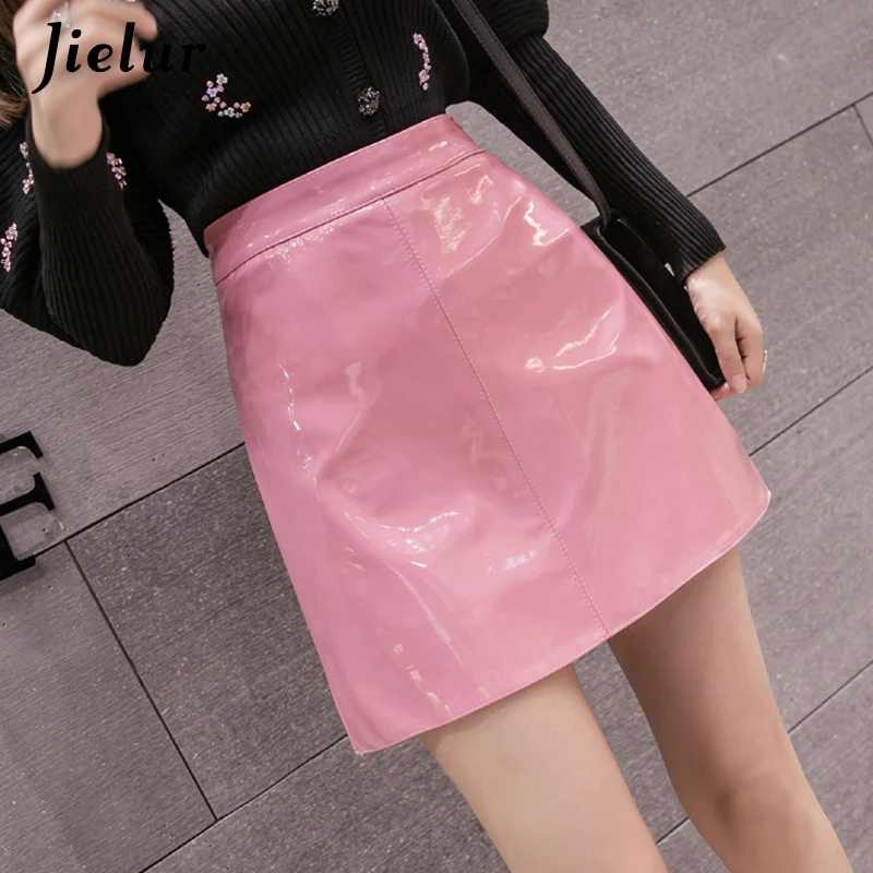Jielur новинка 2020 высокая талия юбка из искусственной кожи женская блестящая яркая женская юбки чистый 5 цветов а-силуэт сексуальная для девушек красная короткая подол S-2XL