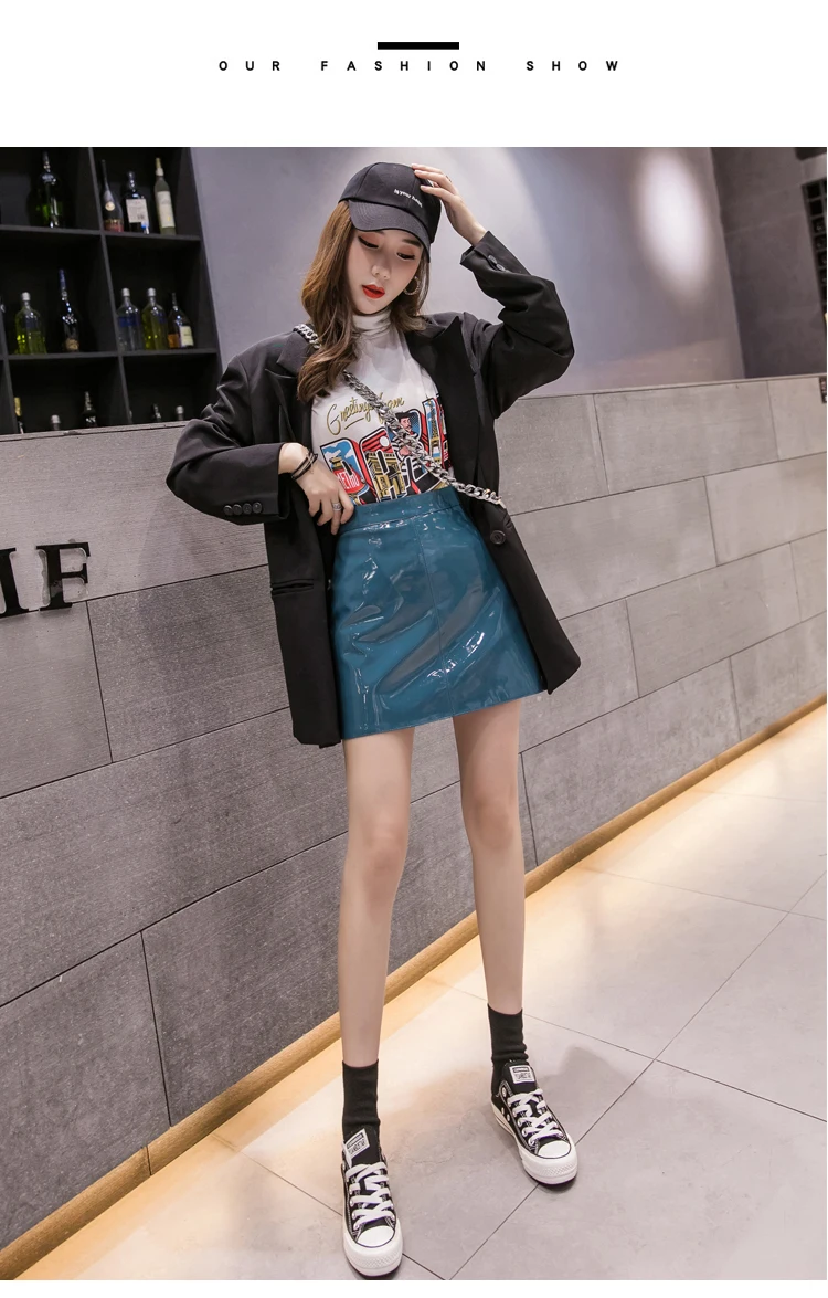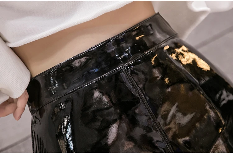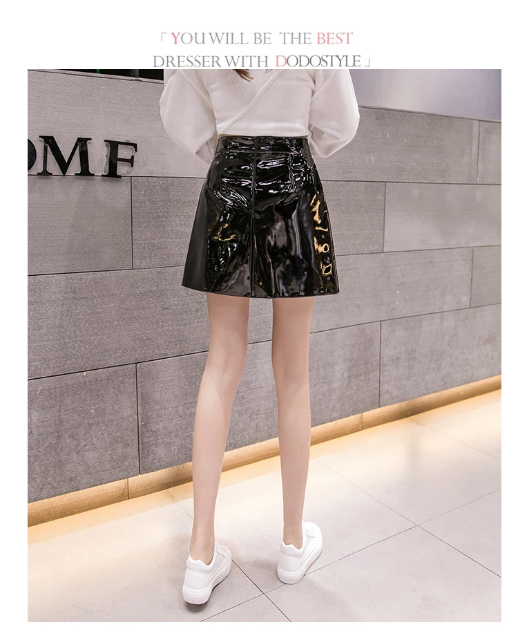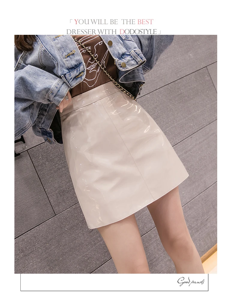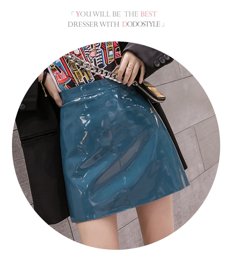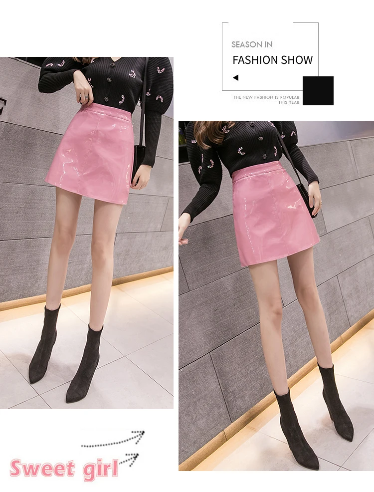 Jielur новинка 2020 высокая талия юбка из искусственной кожи женская блестящая яркая женская юбки чистый 5 цветов а-силуэт сексуальная для девушек красная короткая подол S-2XL