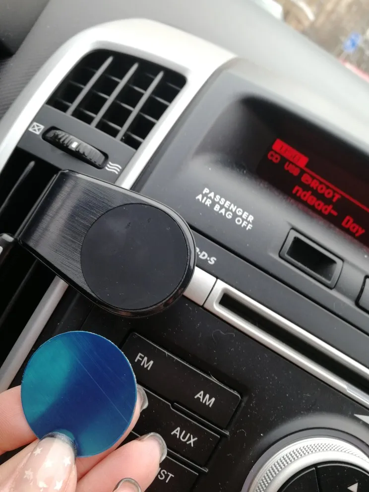 Очень практично. Хорошо вписывается в вентиляционные решетки автомобиля. Хороший магнит. Доволен покупкой.
