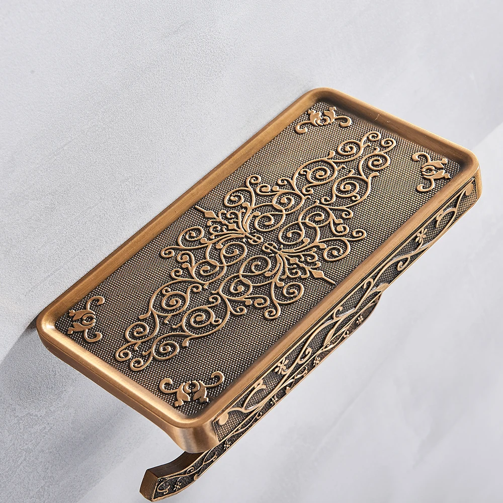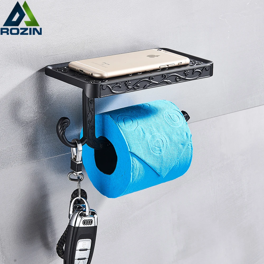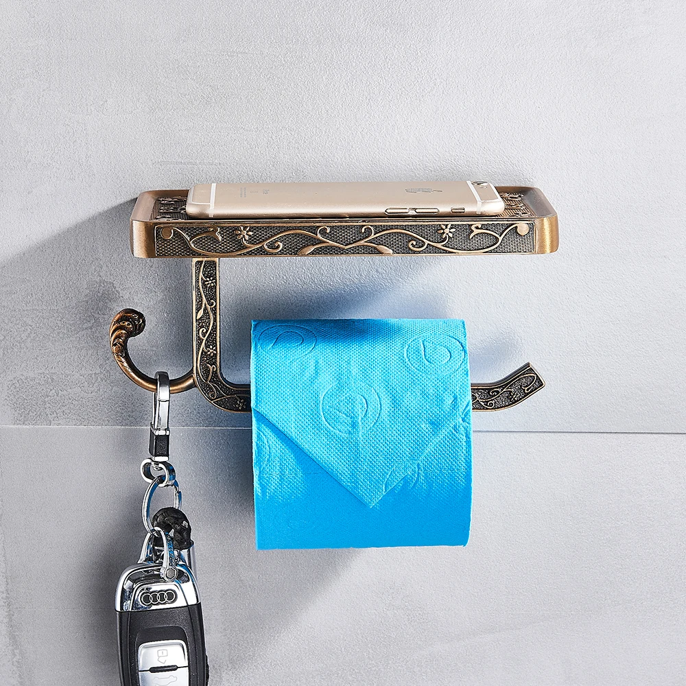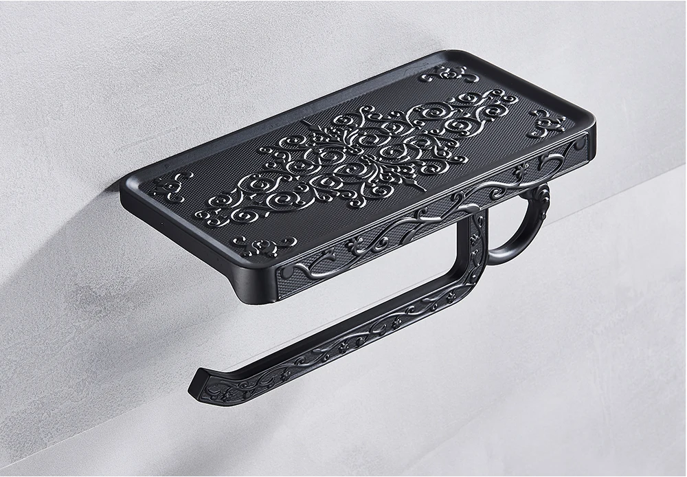 Набор аксессуаров для ванной, алюминиевый античный держатель для туалетной бумаги черного цвета с полкой и креплением на стену, для Мобильный телефон