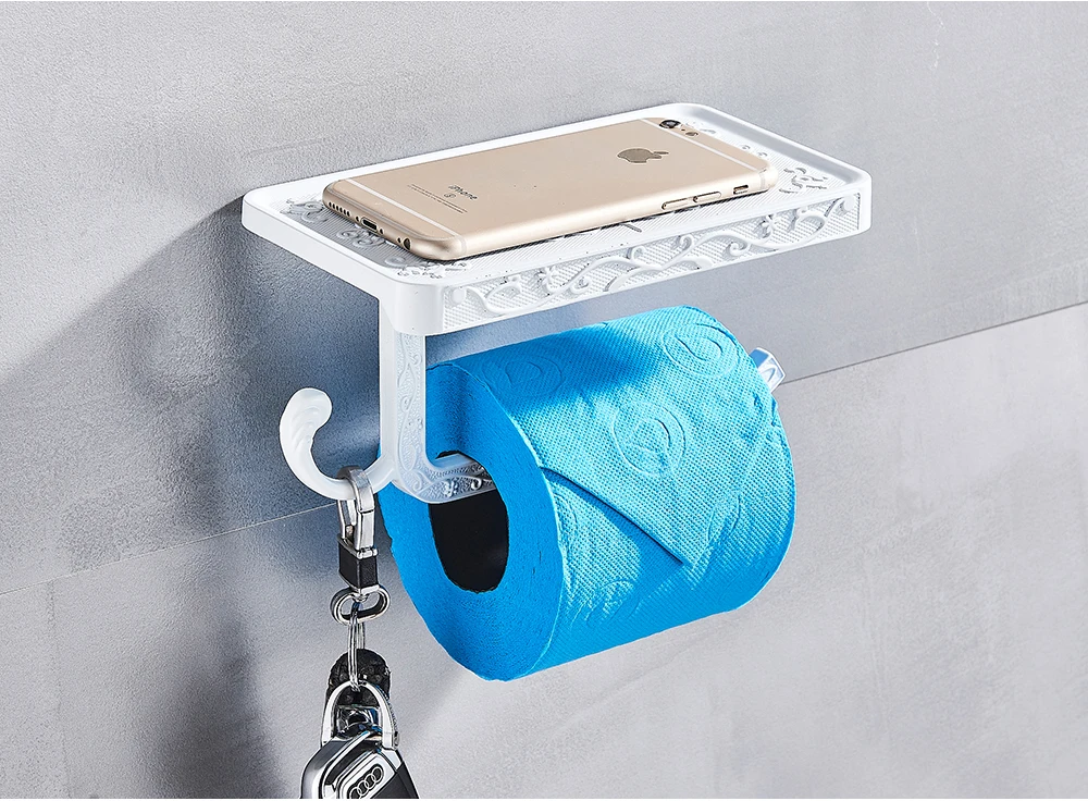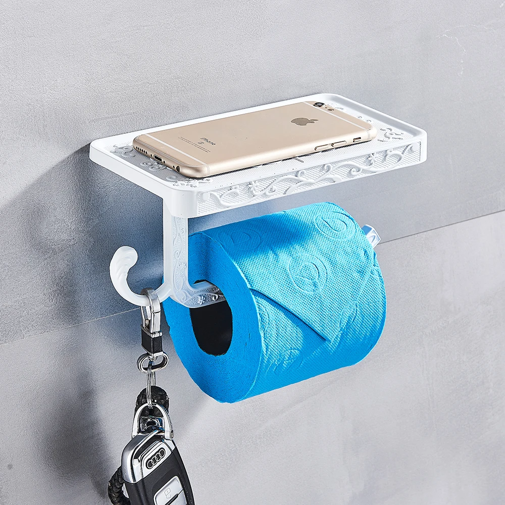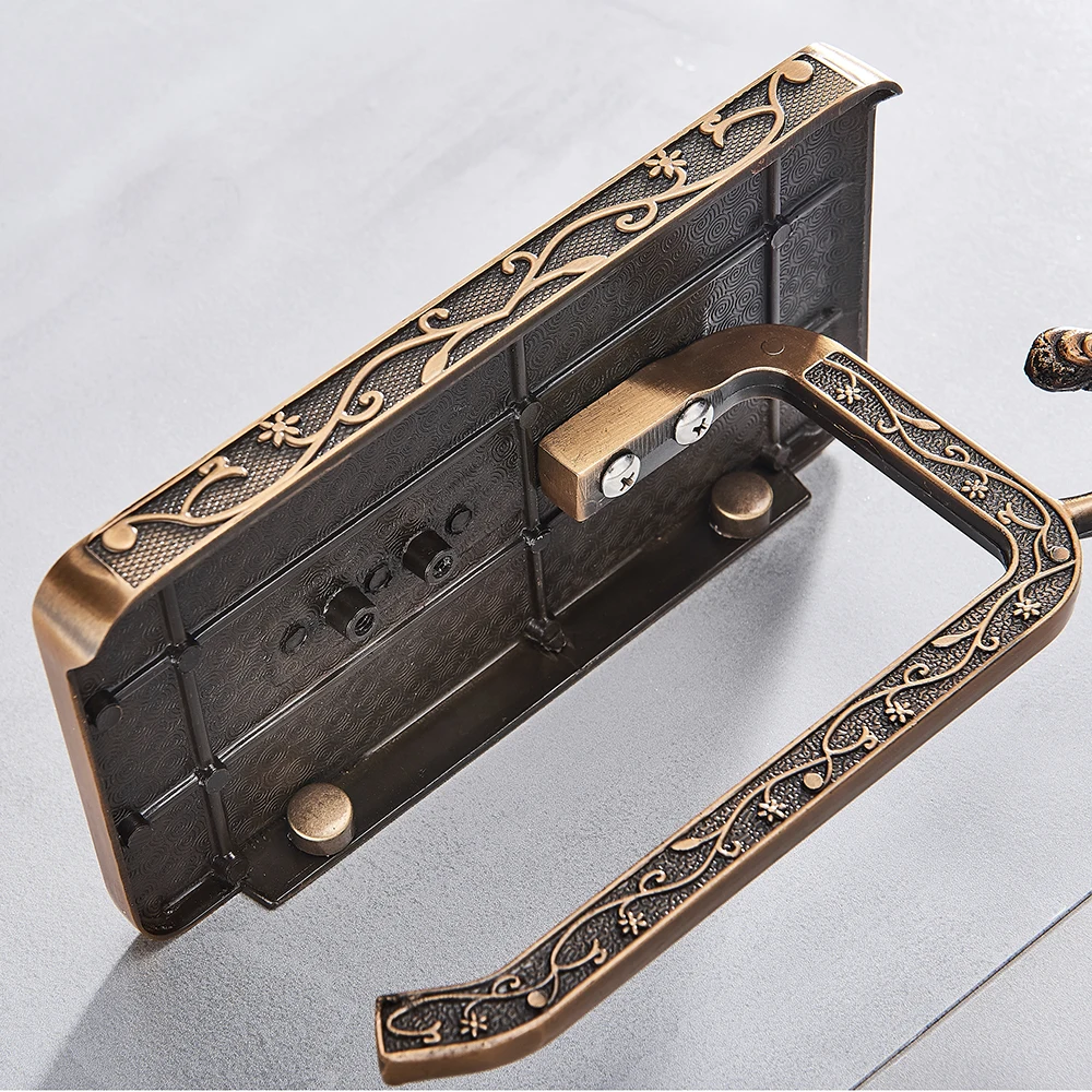 Набор аксессуаров для ванной, алюминиевый античный держатель для туалетной бумаги черного цвета с полкой и креплением на стену, для Мобильный телефон