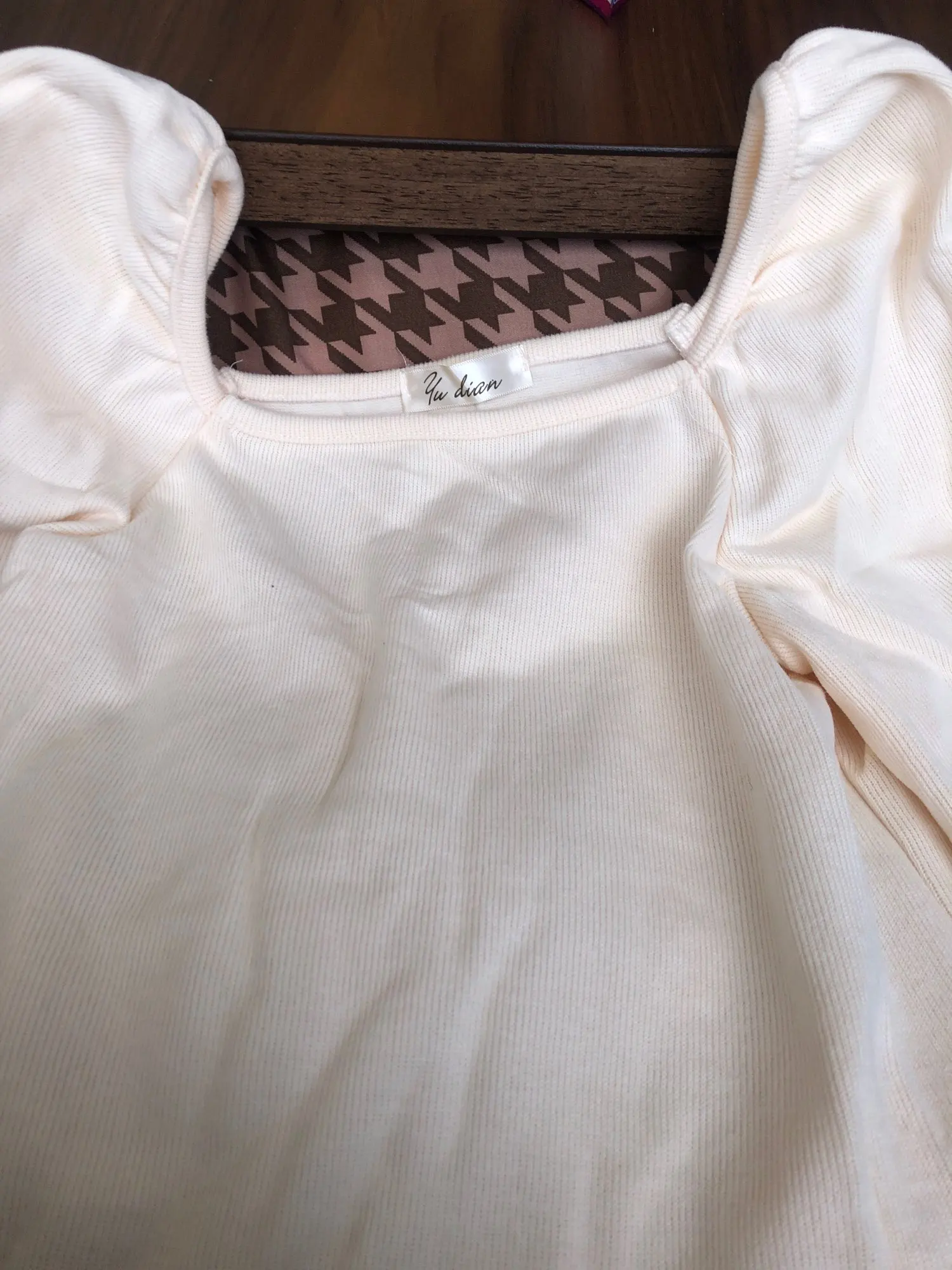 Вырез немного выше, чем ожидалось. Материал не слишком плохой, но был более ванильный белый цвет, чем на фото.