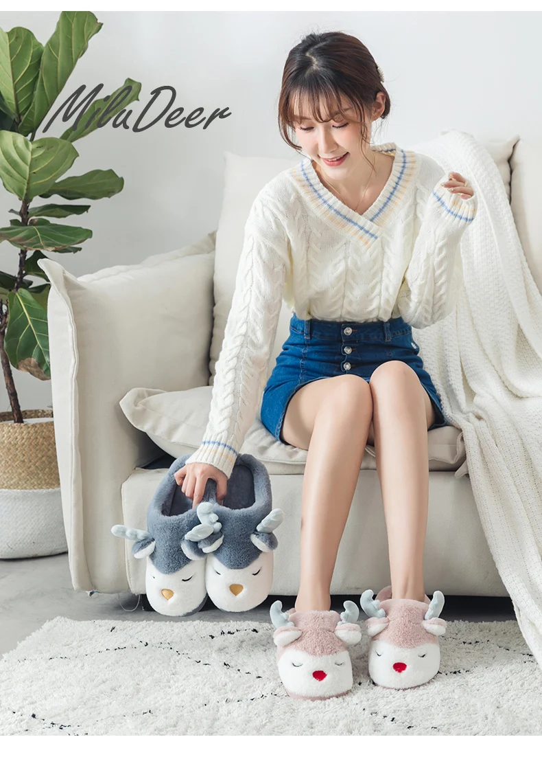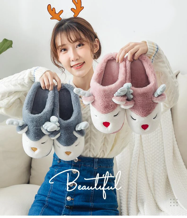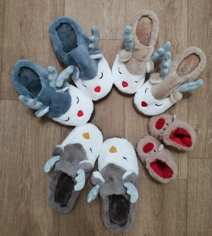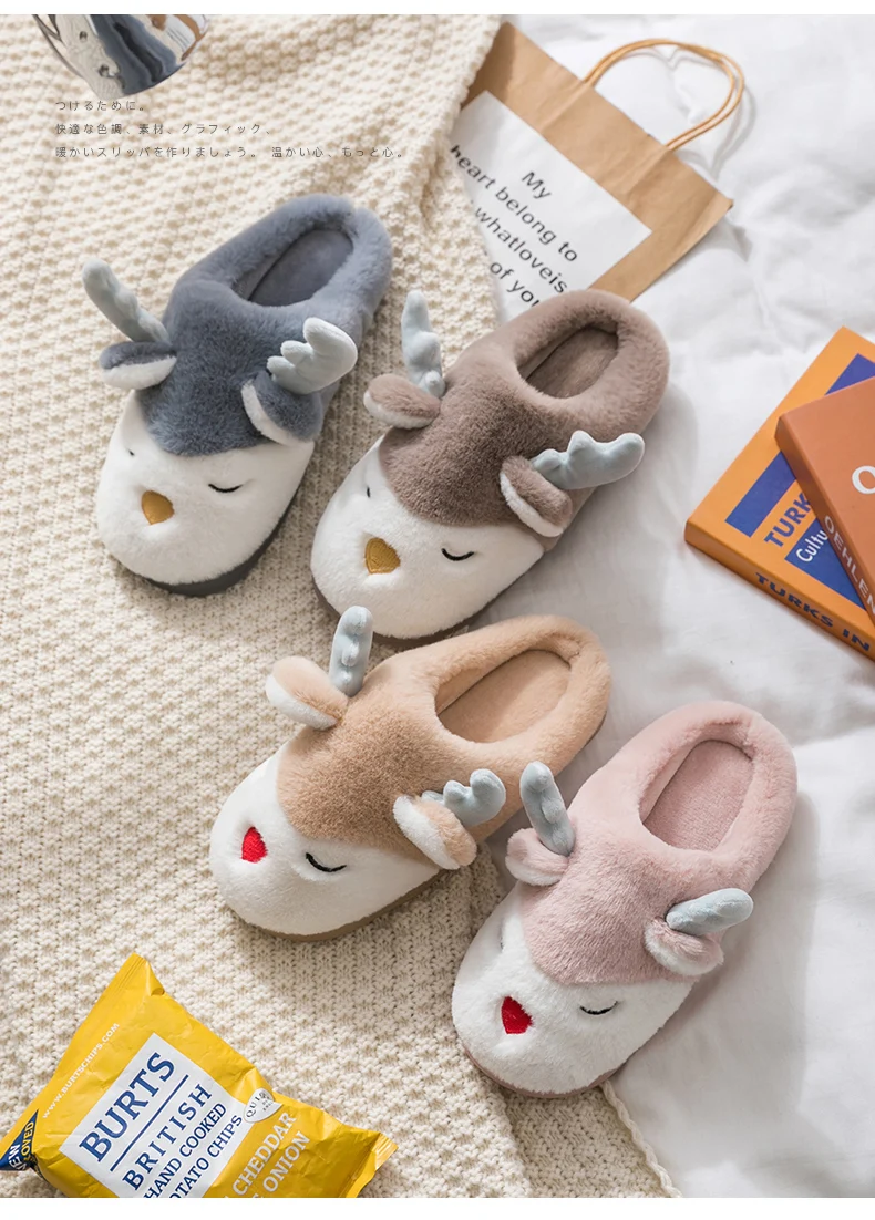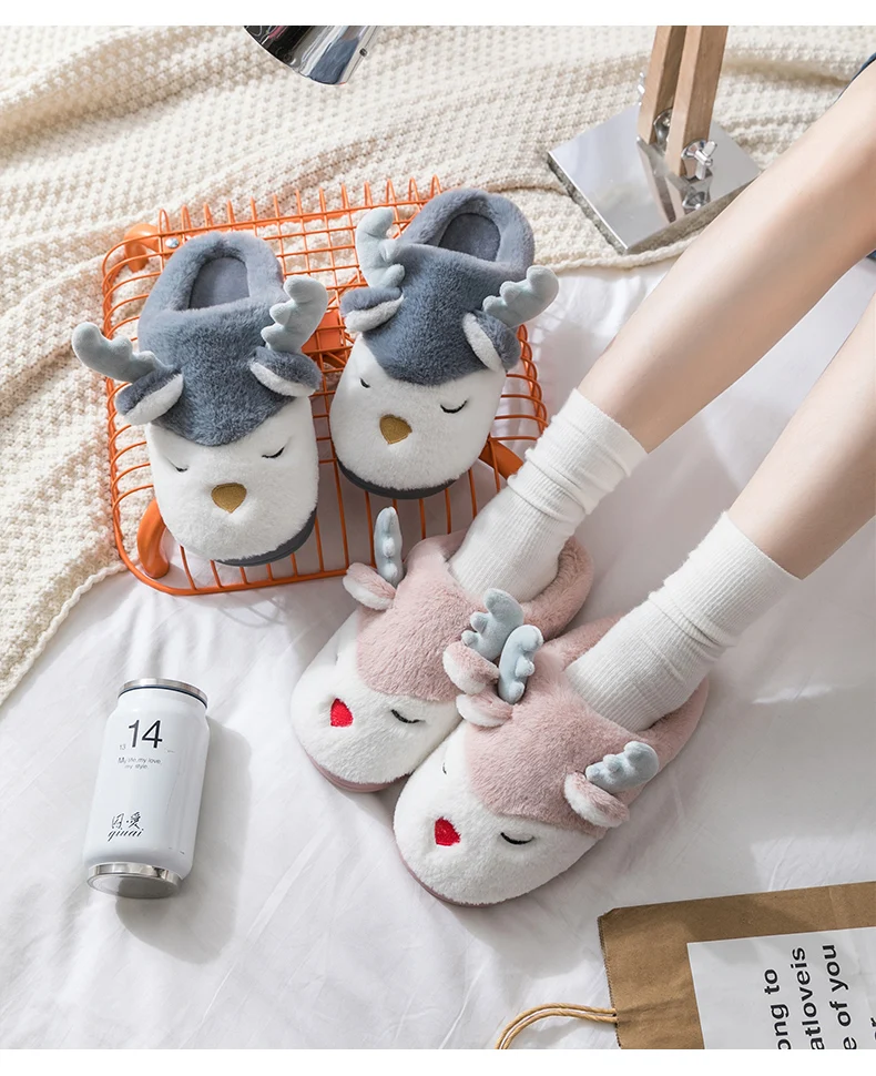 обувь женская домашние тапочки слайдеры тапки женские домашние Женские зимние домашние тапочки с рисунком оленя и лося; Нескользящая Мягкая теплая Домашняя обувь для мужчин и женщин; Домашняя обувь для пар