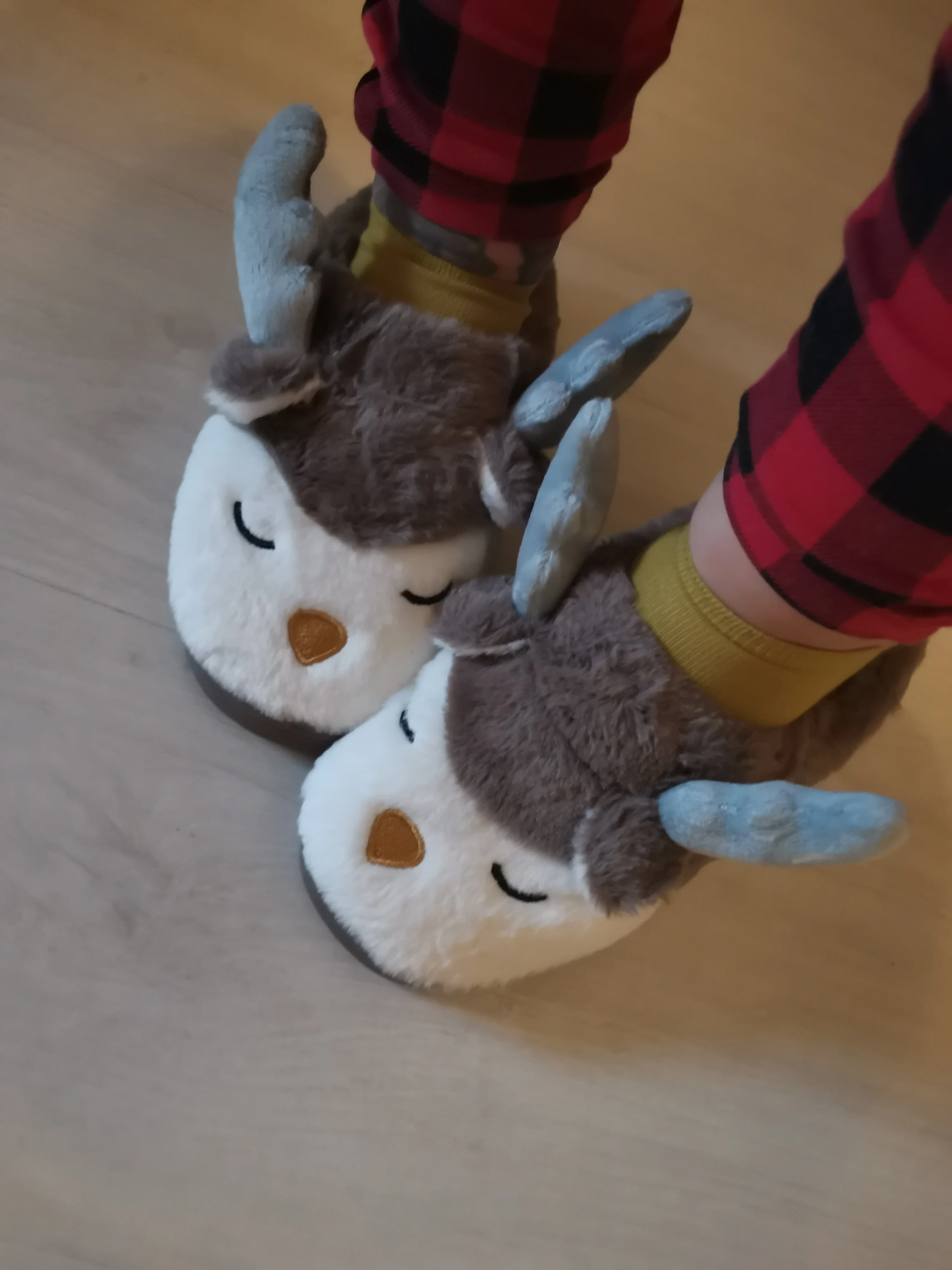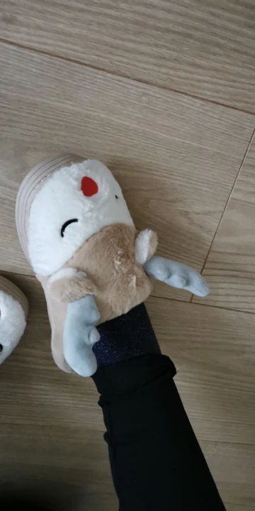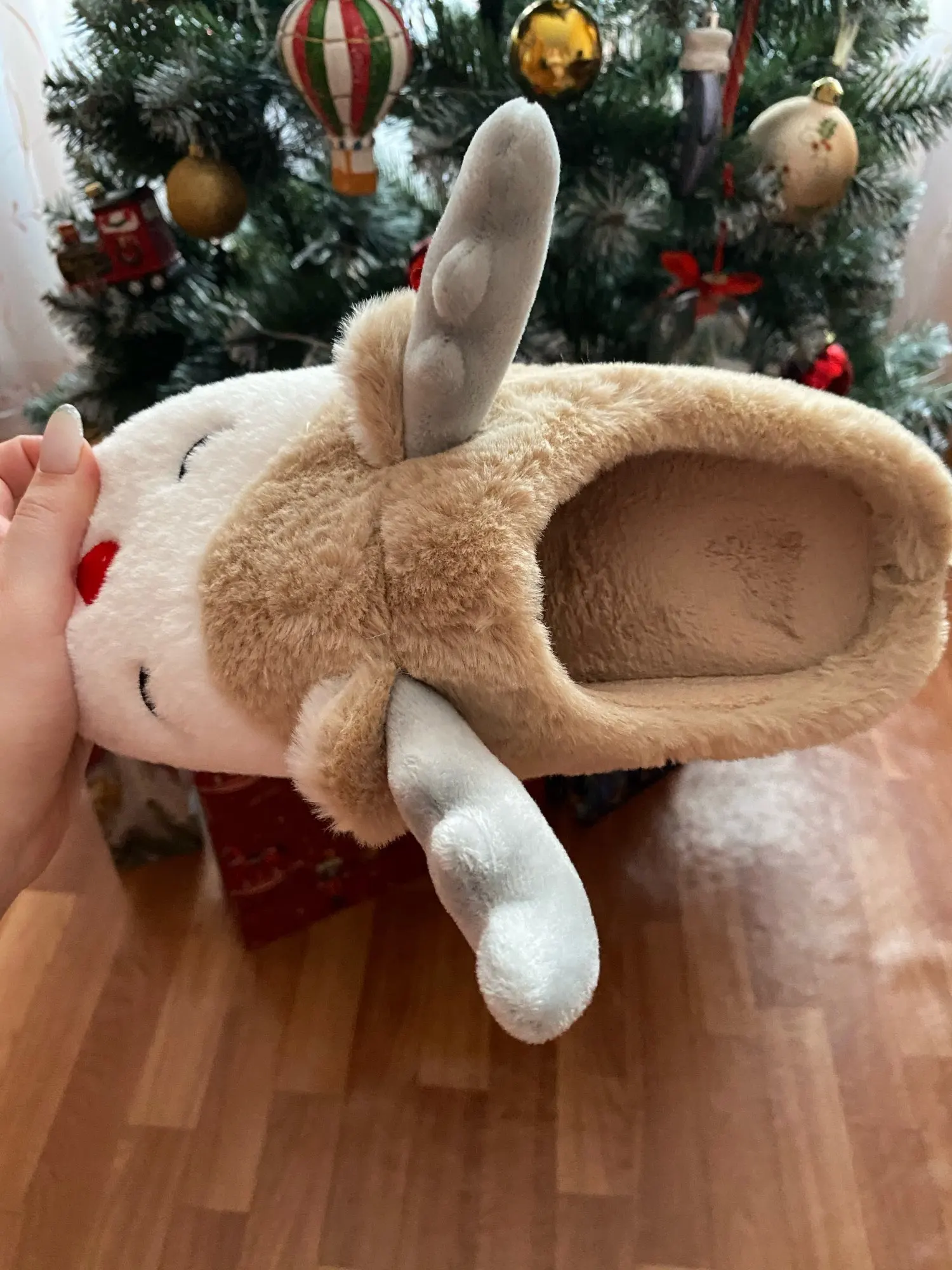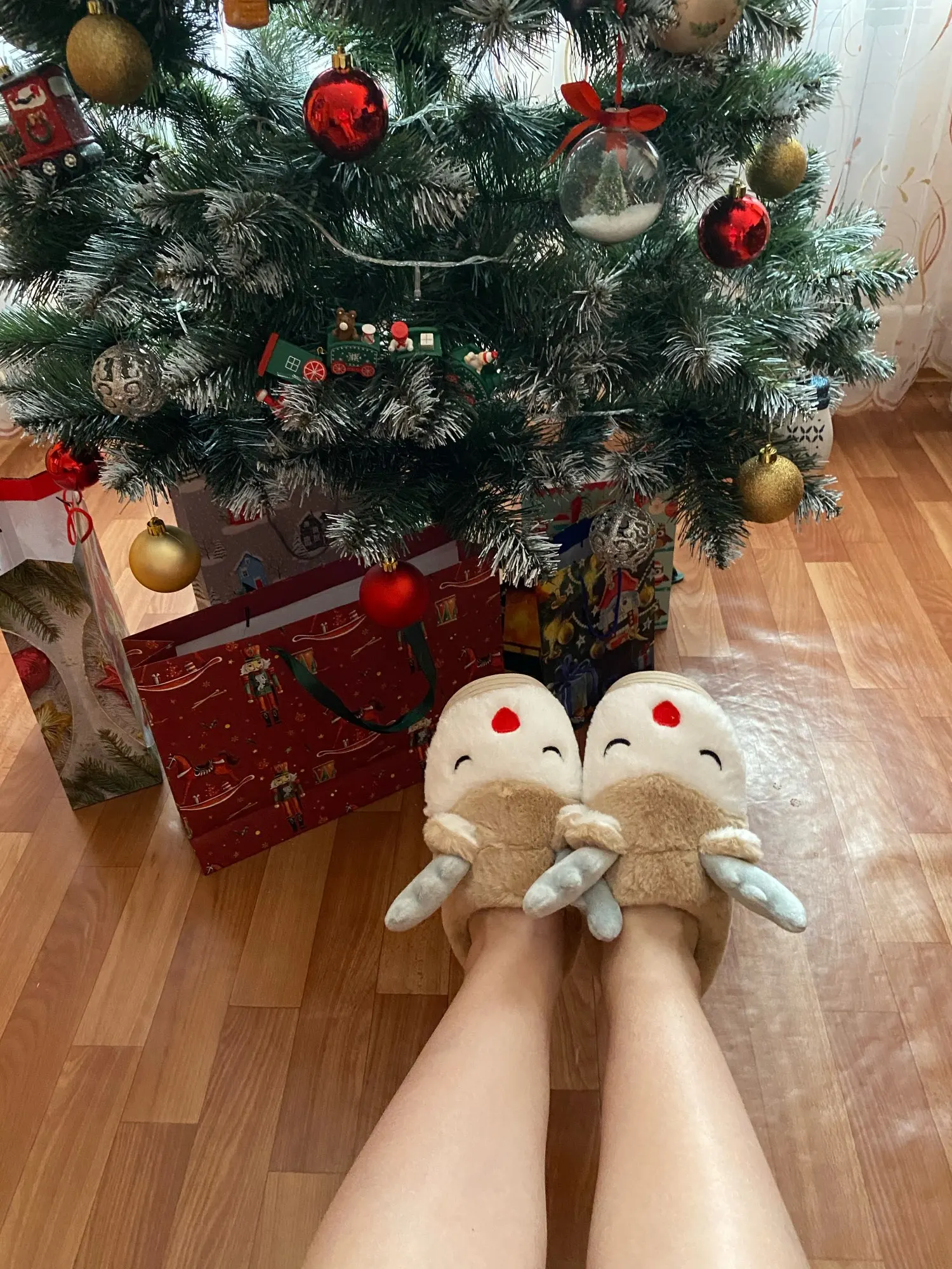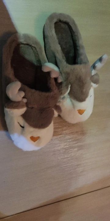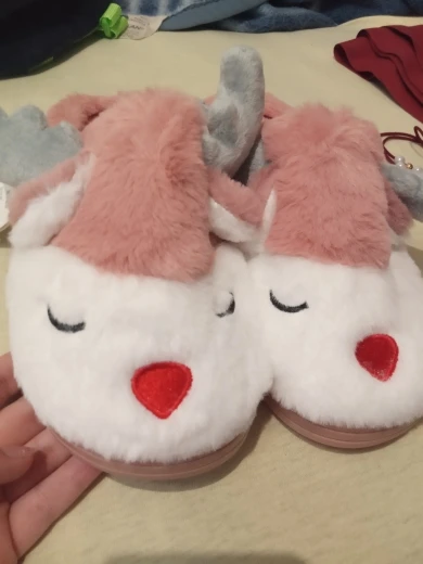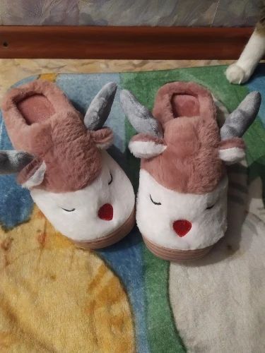 Очень хорошие тапочки, такие прям рождественские. Качество огонь, можно даже на подарок. У меня 38 размер ноги, взяла 42-43, пошёл идеально с небольшим запасом под носочек. Спасибо продавцу. Доставка кстати тоже очень быстрая