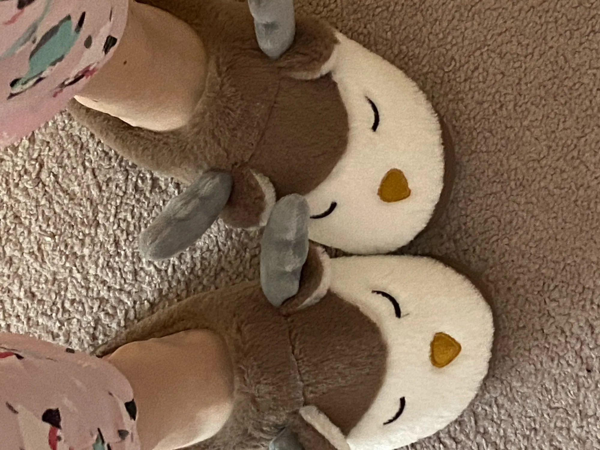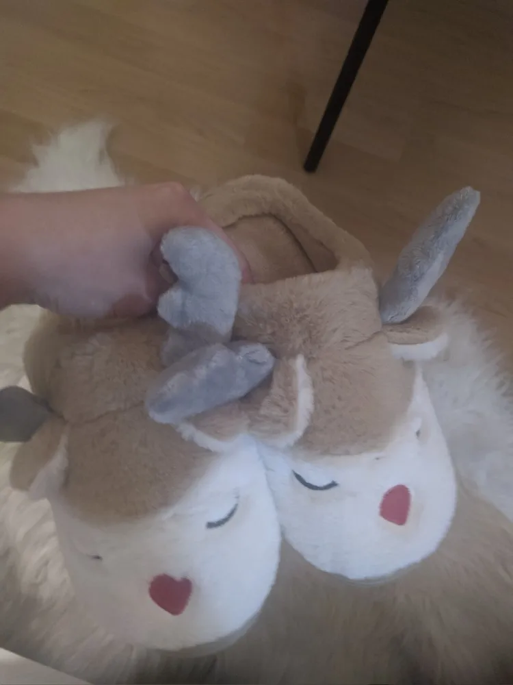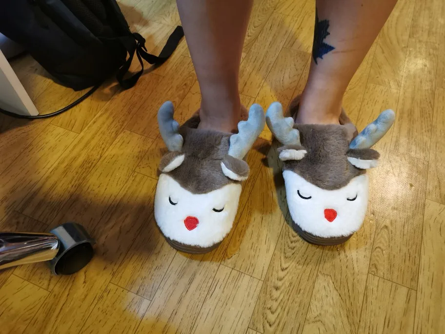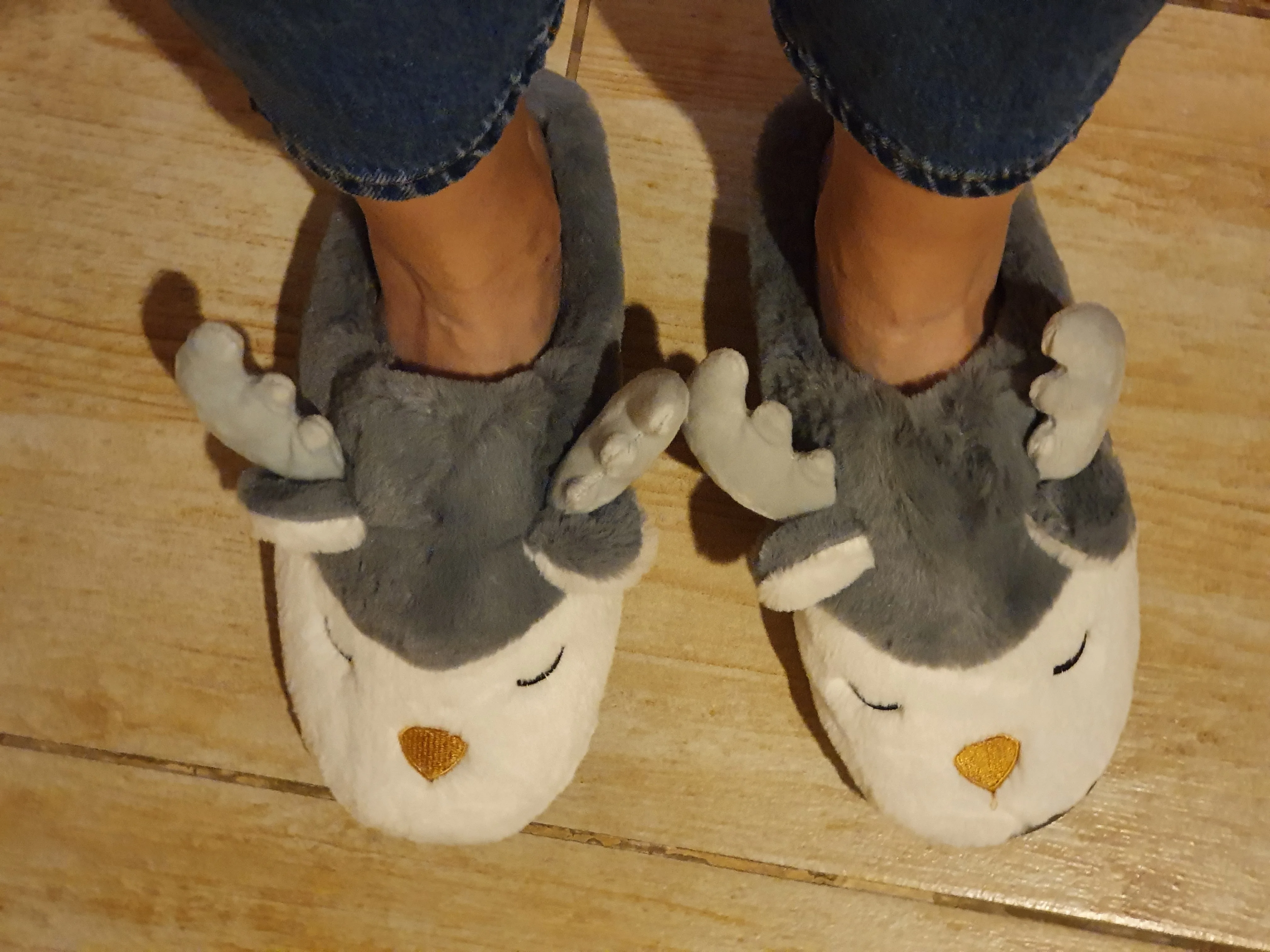 Очень хорошие тапочки, такие прям рождественские. Качество огонь, можно даже на подарок. У меня 38 размер ноги, взяла 42-43, пошёл идеально с небольшим запасом под носочек. Спасибо продавцу. Доставка кстати тоже очень быстрая