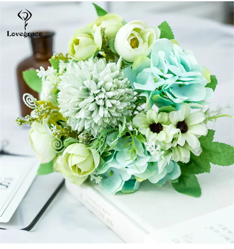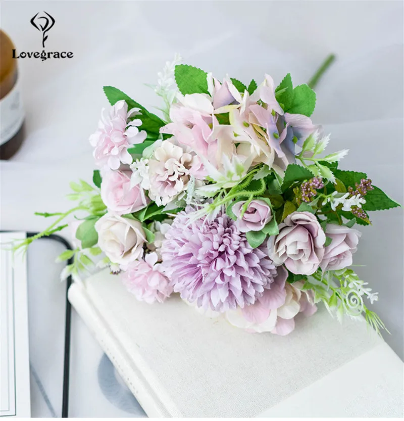 Lovegrace 1 букет Искусственные Шелковые Розовые цветы пиона свадебное украшение осень Цветочный Букет DIY домашний декор для отеля искусственный цветок для свадьбы стол