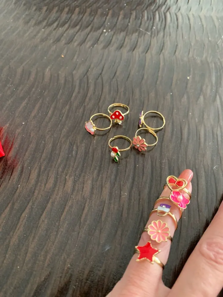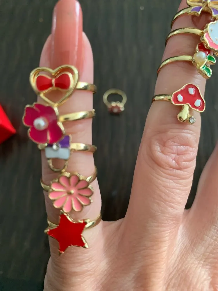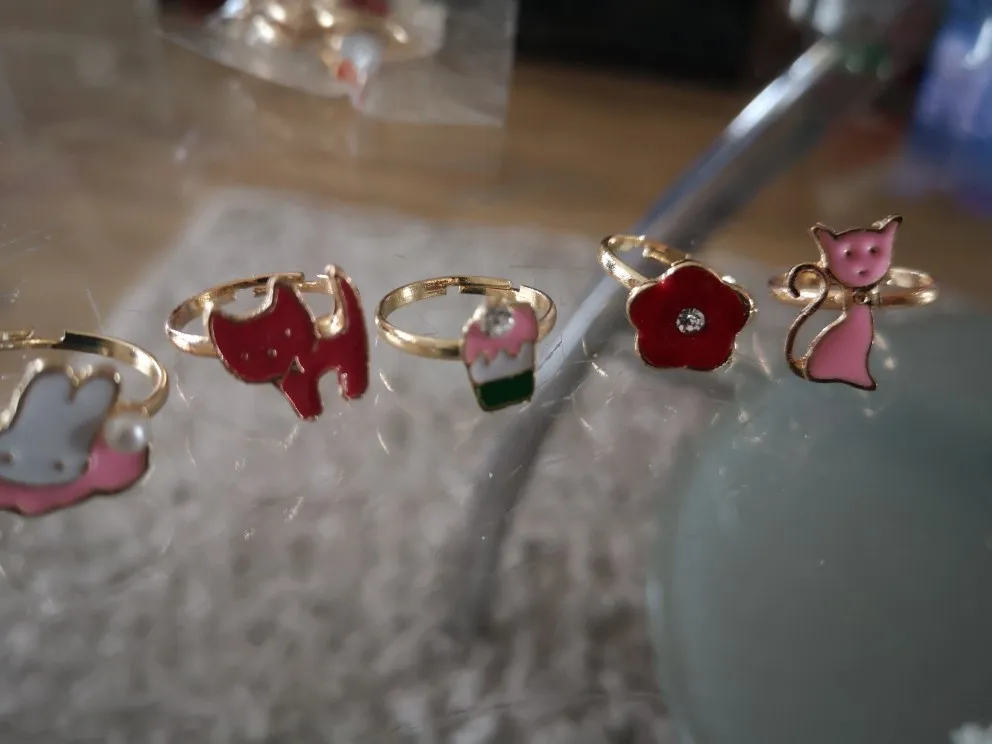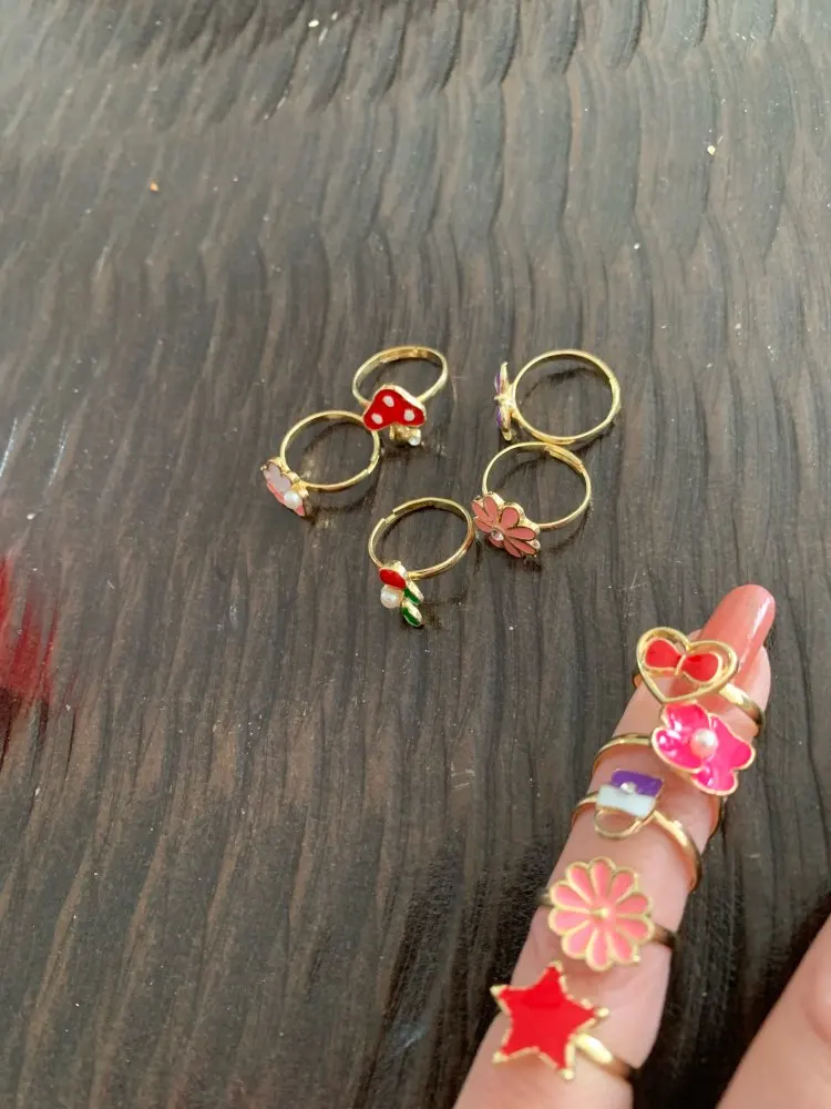 Колечек 5 штук, разные, рвзмер регулируется. Дочка довольна