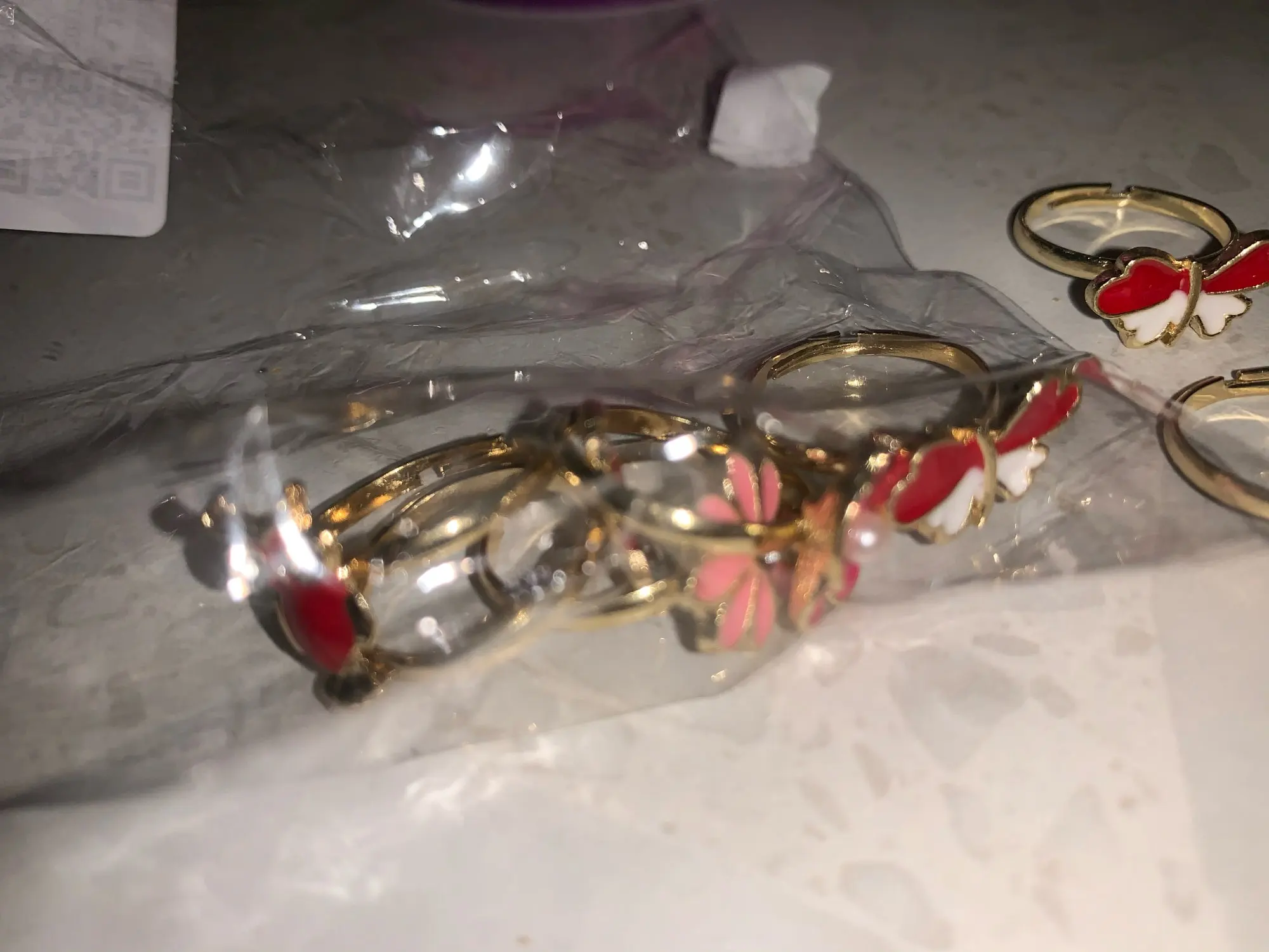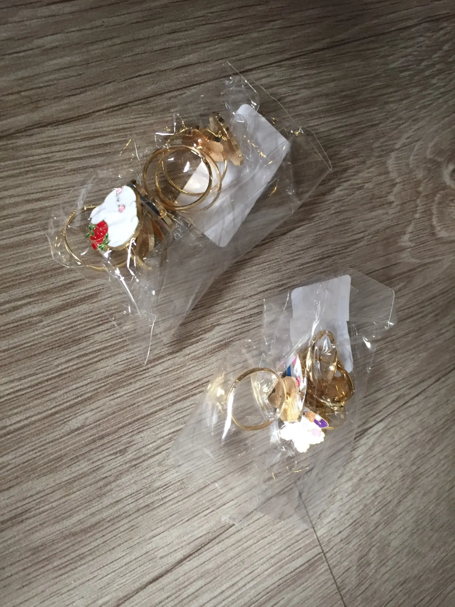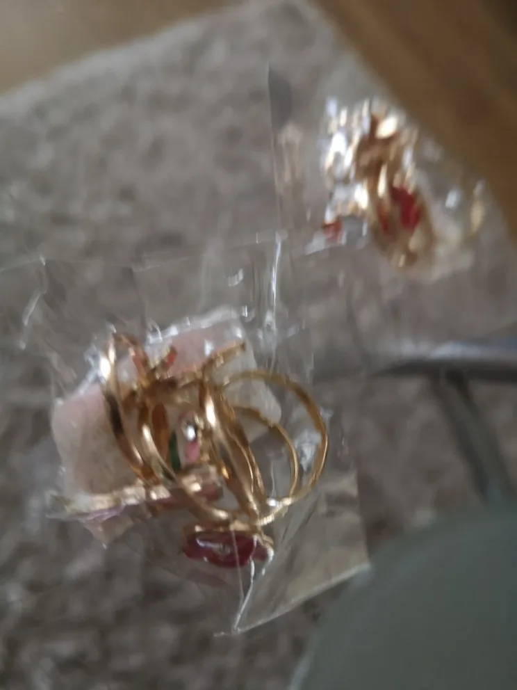 Прислали два комплекта по 5 колечек. Комплекты совершенно одинаковые, а хотелось 10 разных колечек . Но сами кольца миленькие
