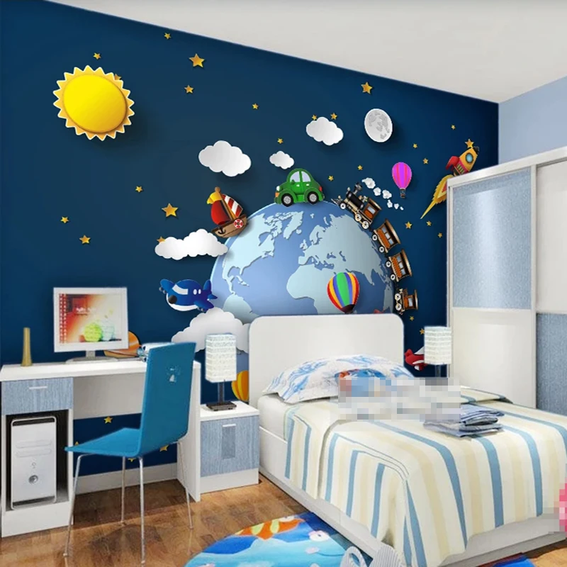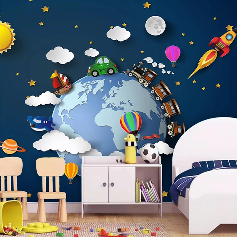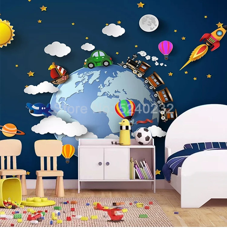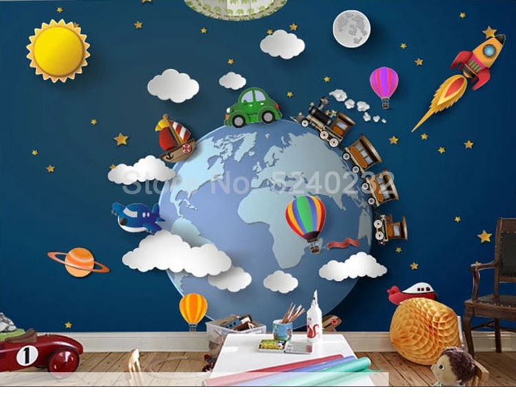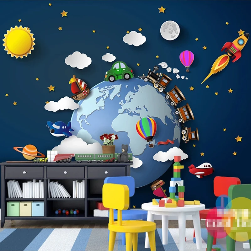 Пользовательские 3D фотообои мультфильм автомобиль Звездная Вселенная планета детская спальня детская комната украшение Настенная роспись Papel De Parede