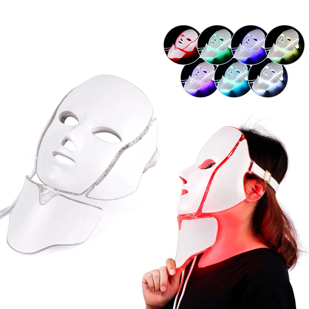 Электрический 7 цветов омоложения кожи терапия светодиодный Фотон Маска светильник уход за кожей Шеи лица против старения кожи подтяжки морщин