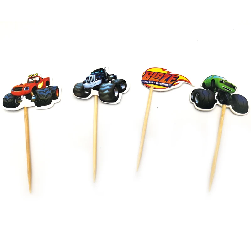 24 шт.лот украшение для дня рождения Blaze Monster machine тематические топперы для капкейков с палочками Baby Shower для мальчиков, сувениры, топпер для торта
