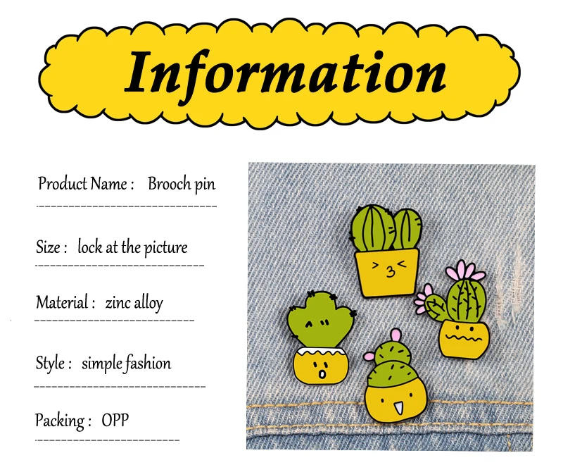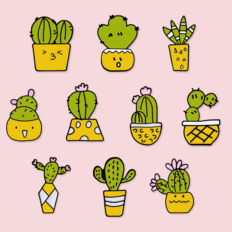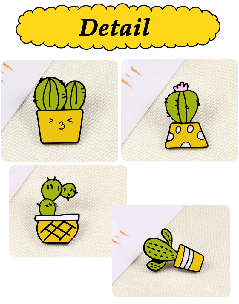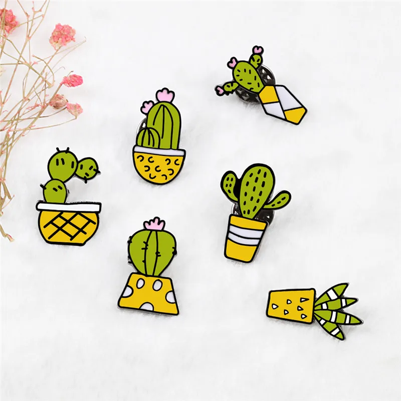 Брошь Детская в форме кактуса, значок из денима, с эмалью