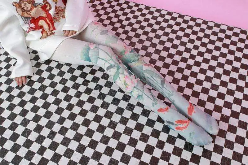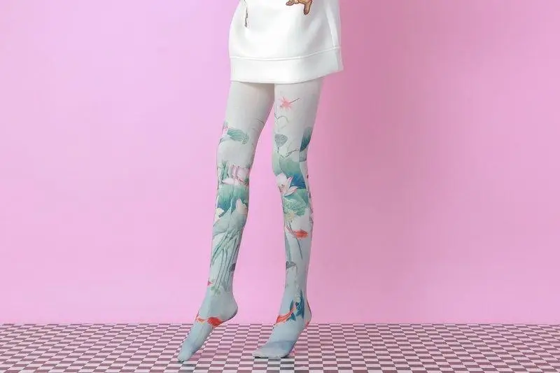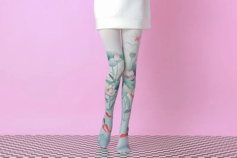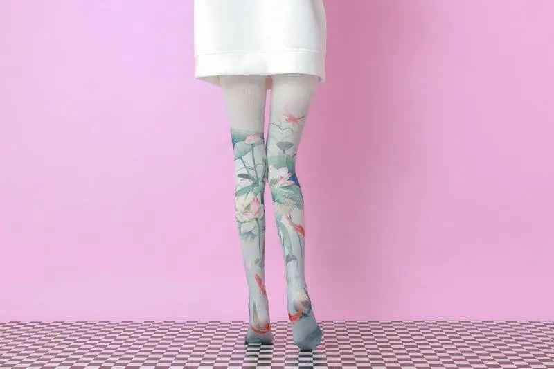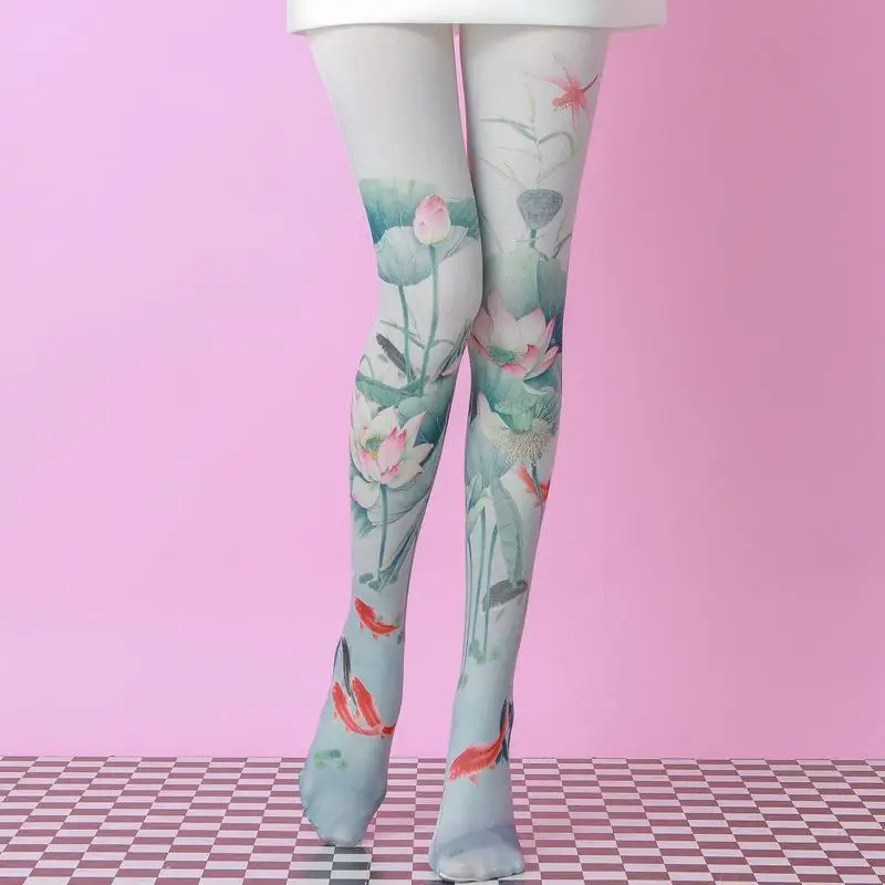 Колготки с принтом лотоса и карпа