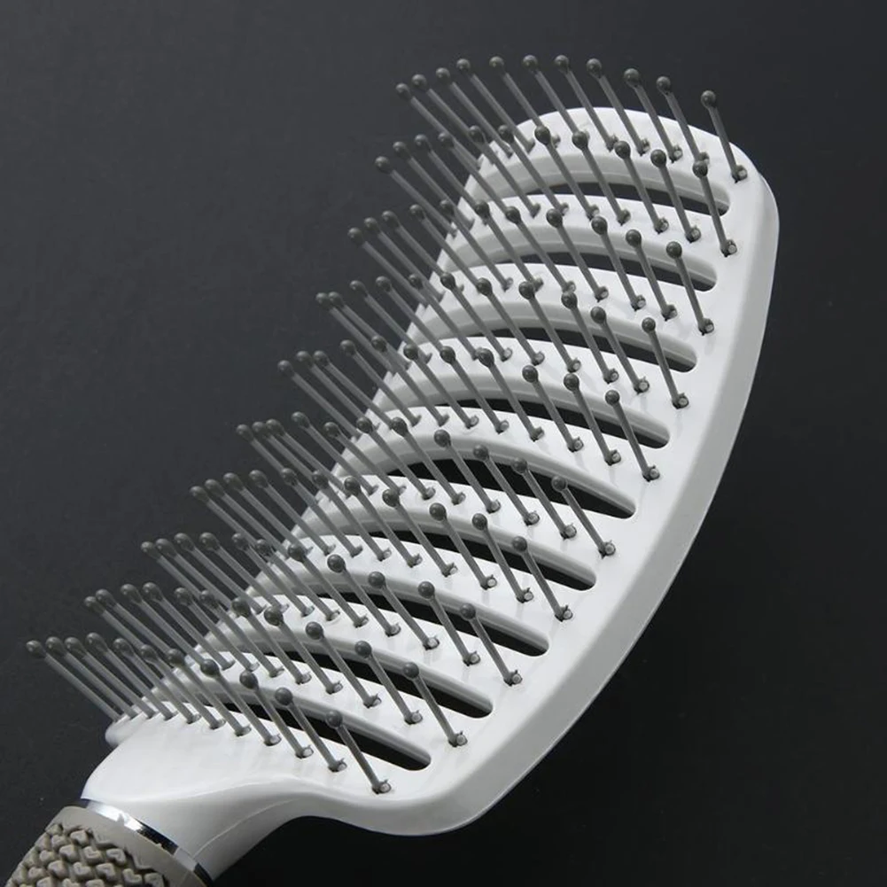 Особенности:-Не повреждает кожу головы и не вырабатывает статическое электричество.-Дизайн круглой дуги, изысканный и мягкий. Удобный и прочный.-Нескользящая ручка, противотемпературный материал, приятная на ощупь.Технические характеристики:-Материал: АБС, смола, нейлон-Посылка содержание:-1 x Щетка для волос