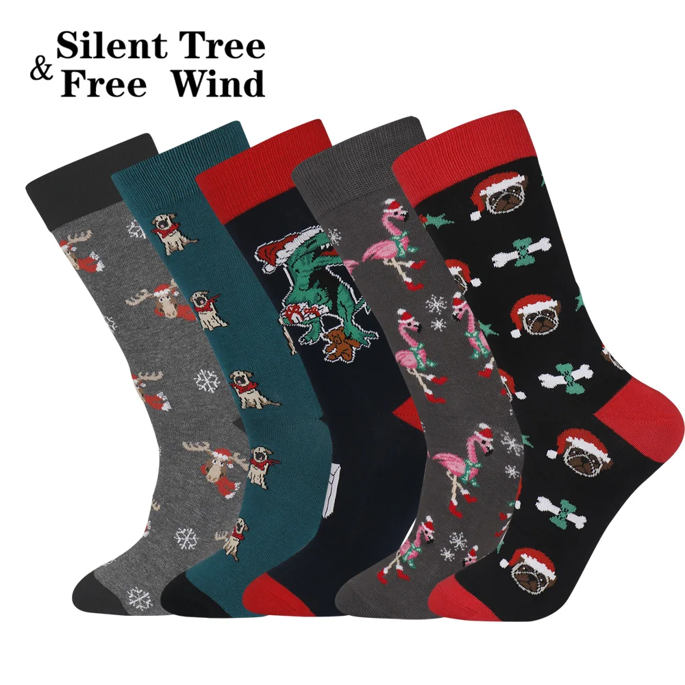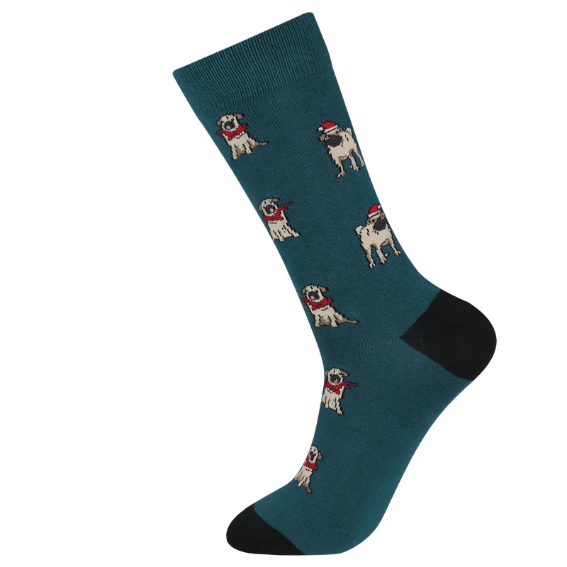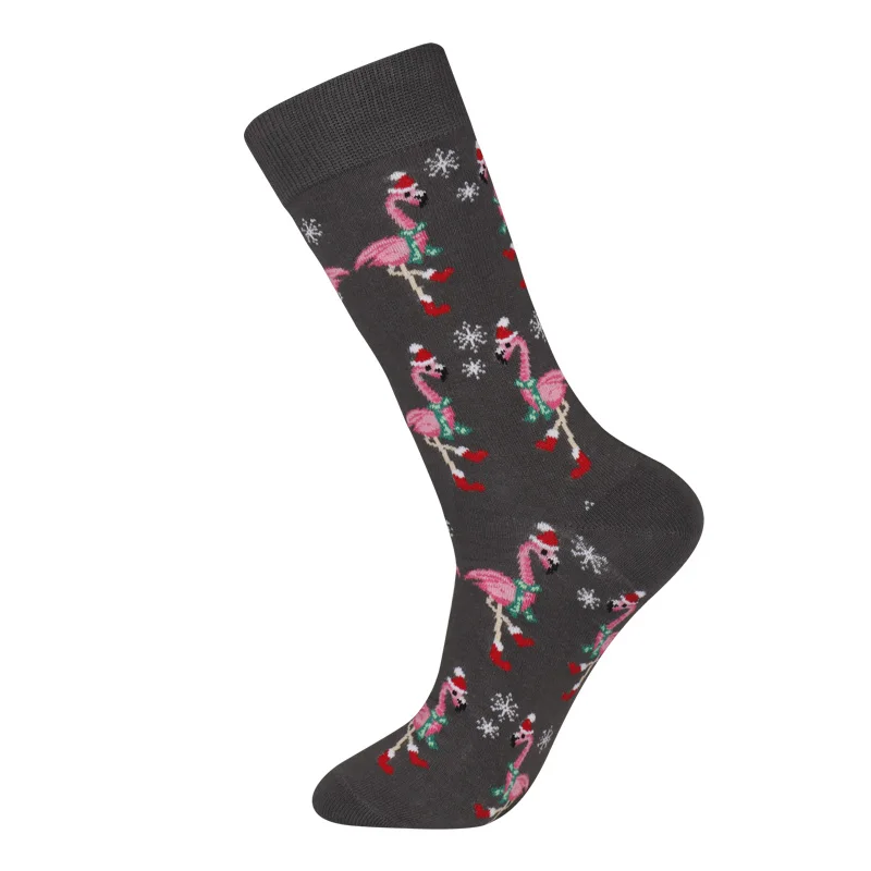 Рождественские Носки мужские, рождественский подарок, забавные носки из хлопка с рисунком бульдога, фламинго, лося, динозавра