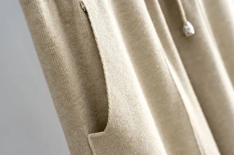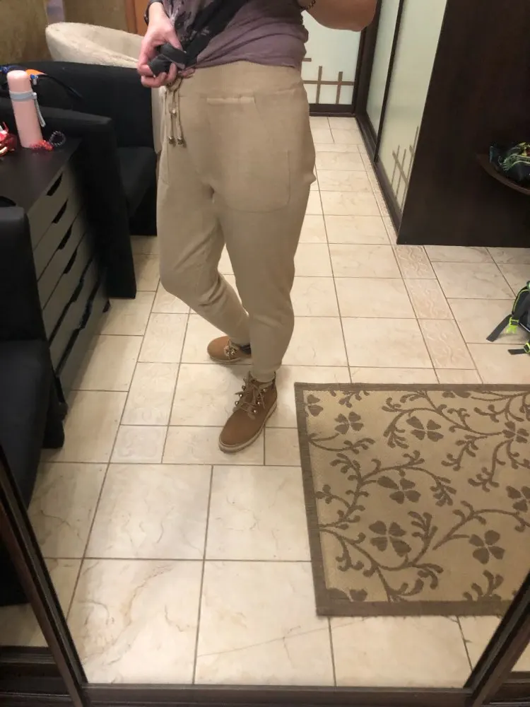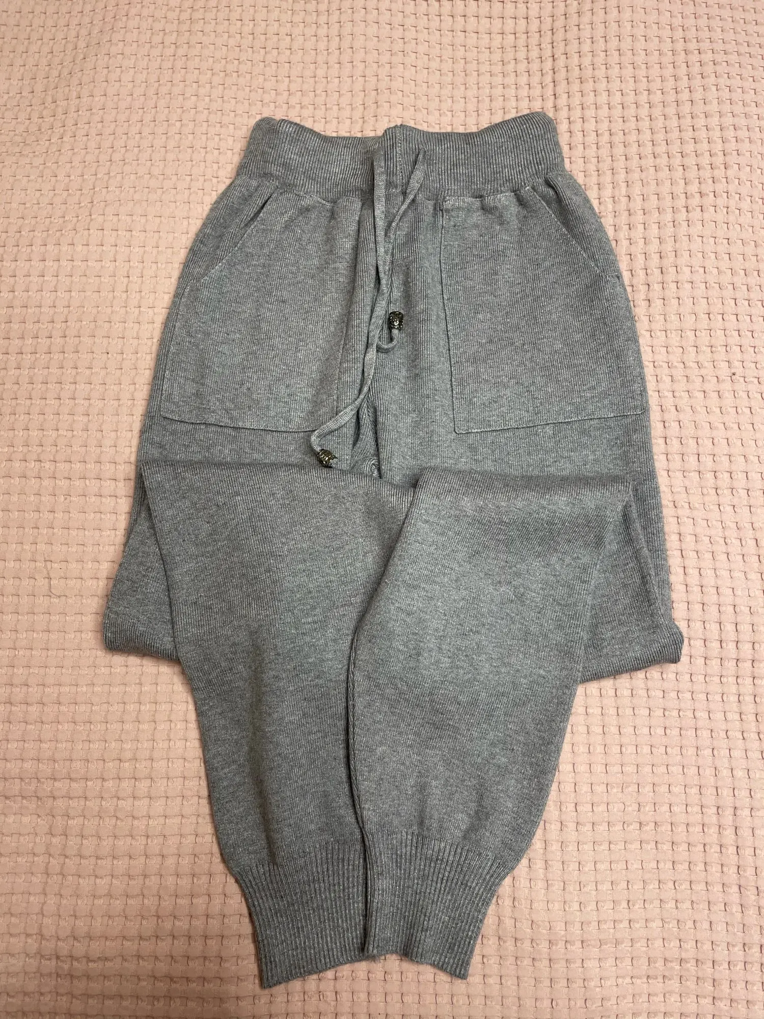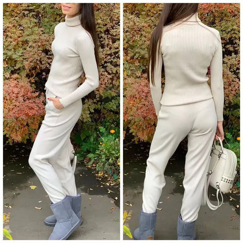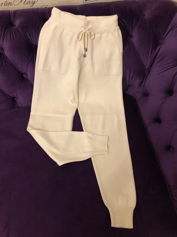Брюки выполнены из качественного трикотажа, прекрасно тянутся, не притягивают к себе всякие пылинки) Единственное, на XS, даже с моим беременным животом, штанины очень оверсайз смотрятся, на фото видно. Лучше всего подойдут для девушек с размером М. По длине на рост 157 отлично. Очень мягкие, комфортные, на южную зиму в самый раз)).