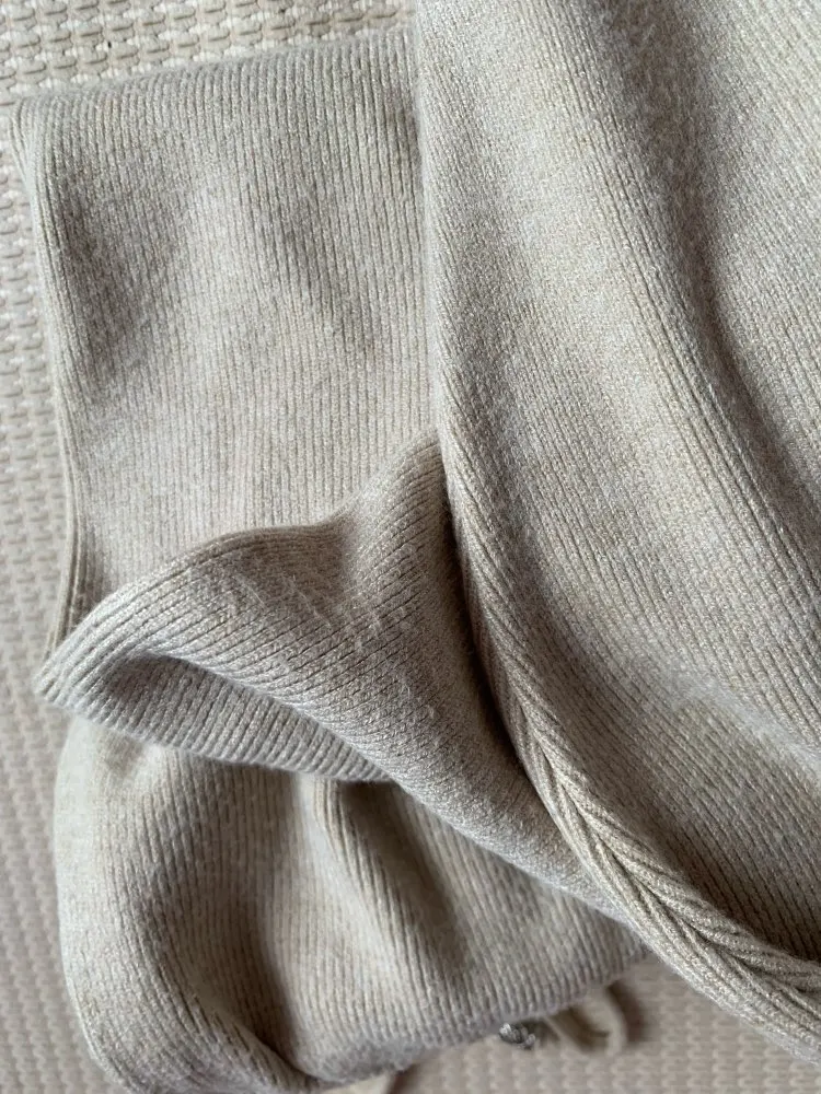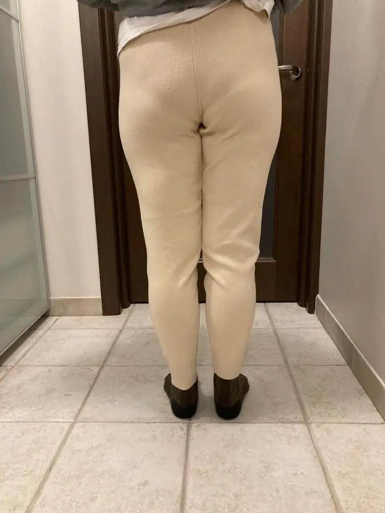 Классные штанишки. Чтобы вы понимали, насколько их люблю, то у меня уже есть такие чёрные и бежевые))) На параметры талия 65 см и бёдра 92,5 см сели отлично, немного свободно. На рост 163 см длина полная, даже с запасом. Подойдут однозначно и на большие параметры, потому что зимой я была от 74 об 102 см, и тоже отлично сидели на мне штанишки, они хорошо тянутся. Штаны, кстати, качественные, катышки образуются минимально, очень маленькие, даже не катышки, а лёгкое разлохмачивание ткани, я за 10 месяцев даже машинкой ни разу их не обрабатывала. На последнем фото показала, как выглядят ткань бежевых спустя почти год носки.