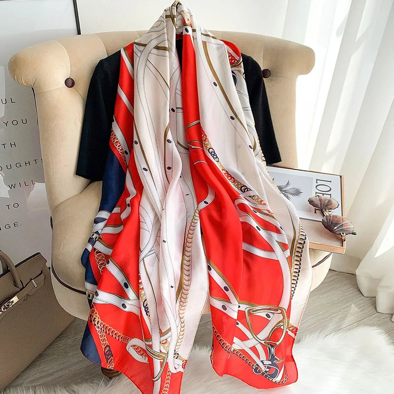 180*90 см новый стиль модный головной платок Шелковый осенний женский популярный шарф женский солнцезащитный платок для пляжа bandanna женский шарф