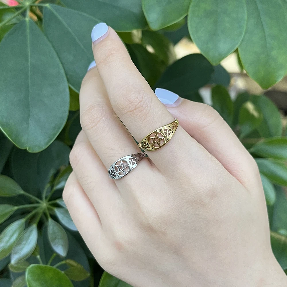 кольца COOLTIME Медальон с пентаклем пентаграммой Для мужчин, кольцо, кольцо из нержавеющей стали Viking защиты языческие Triumph Нержавеющаясталь обручальное кольцо Для женщин Для мужчин талисман Сверхъестественное
