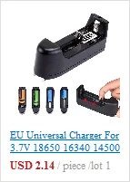 Особенности продукта:Профессиональная продажа 18650 литиевая батарея зарядное устройство!Модный удобный и быстрый, легко носить с собой!Подходит для всех типов литий-ионных аккумуляторов (плоская, выпуклая головка может быть),Автоматическая идентификация и трансформации 3,6 V лития ионный аккумуляторные батареи,Красный светильник при зарядке и зеленом цвете, автоматическая остановка заполнения. Превратите в проливную, долгосрочную вилку.Комплексная функция защиты, положить конец обычным батареям.Для незарядки или частичной зарядки аккумулятор может быть надежным для зарядки.Литиевая батарея, подходит для следующих цилиндрических литий-ионных батарейЗарядное устройство Размер: около 9,2*2,8*2,5 смМатериал: пластикВходное напряжение: 5 ВВыход параметры: 3,7 V (500/750/1000 мА)Подходит для аккумулятора: 18650Примечание:1. Возможны незначительные отклонения на 1-3 см из-за ручного измерения и незначительные отклонения в цвете для разных настроек дисплея