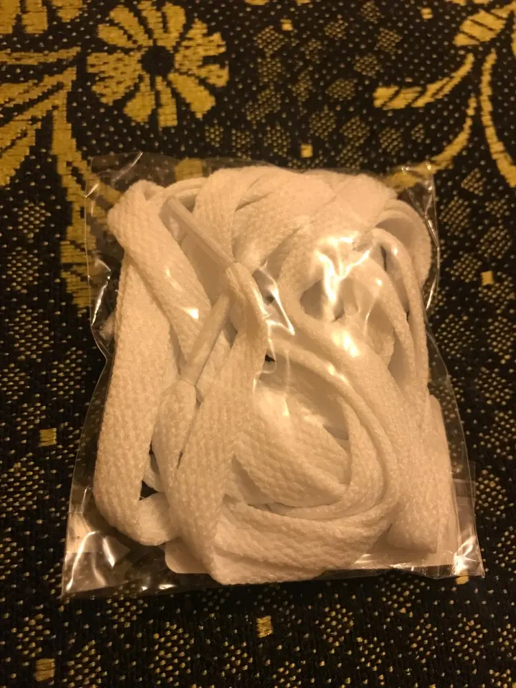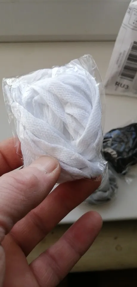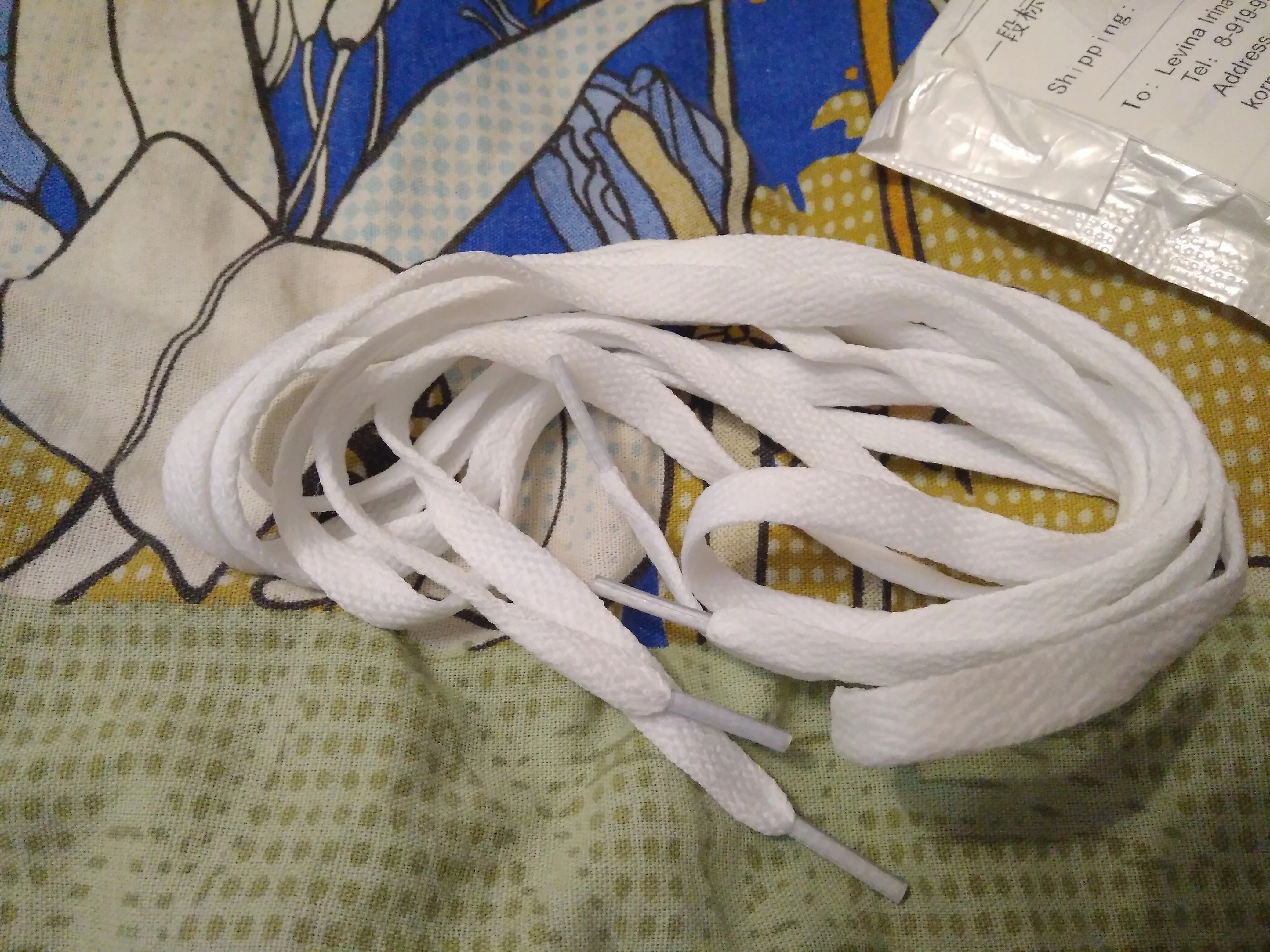 Заказал 01.01.2021. Посылка отправлена 03.01.2021. В Нижегородскую область доставили 24.02.2021. Трек номер отслеживался только на территории Китая. Заказывал одну пару. Длина шнурков: один 83.5 см, другой 85 см; ширина 8 мм; толщина 1.5 мм.