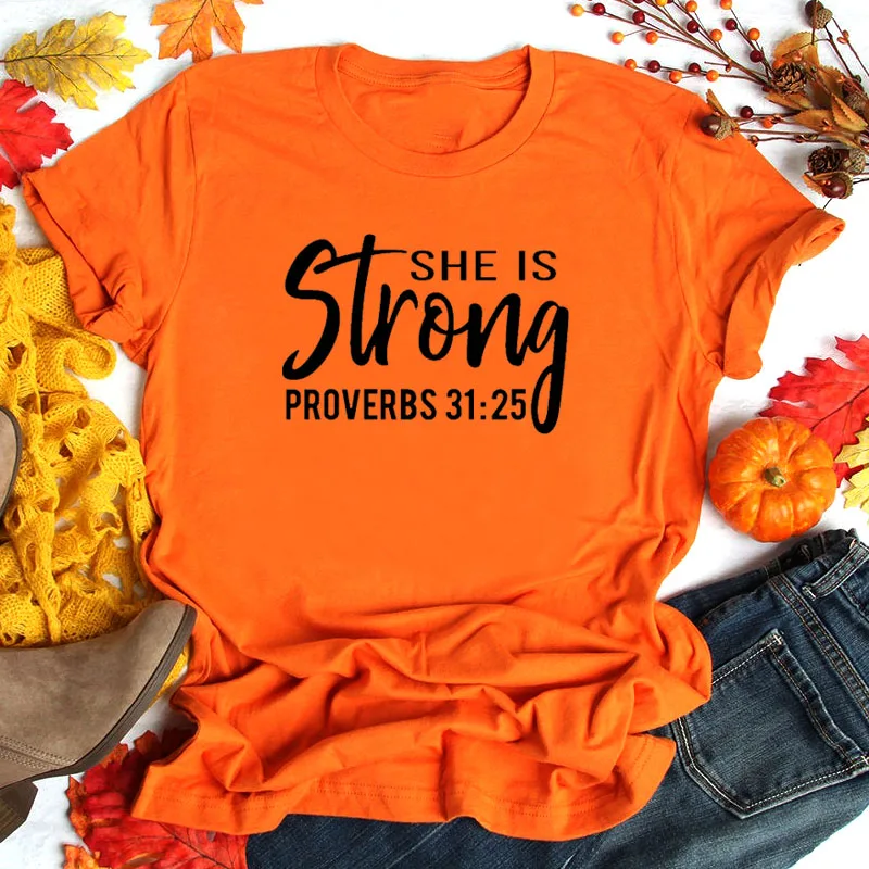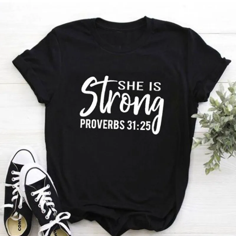 Женская футболка с надписью «She Is Strong Библия», хлопковые топы с надписью «Christian размера плюс», Прямая поставка
