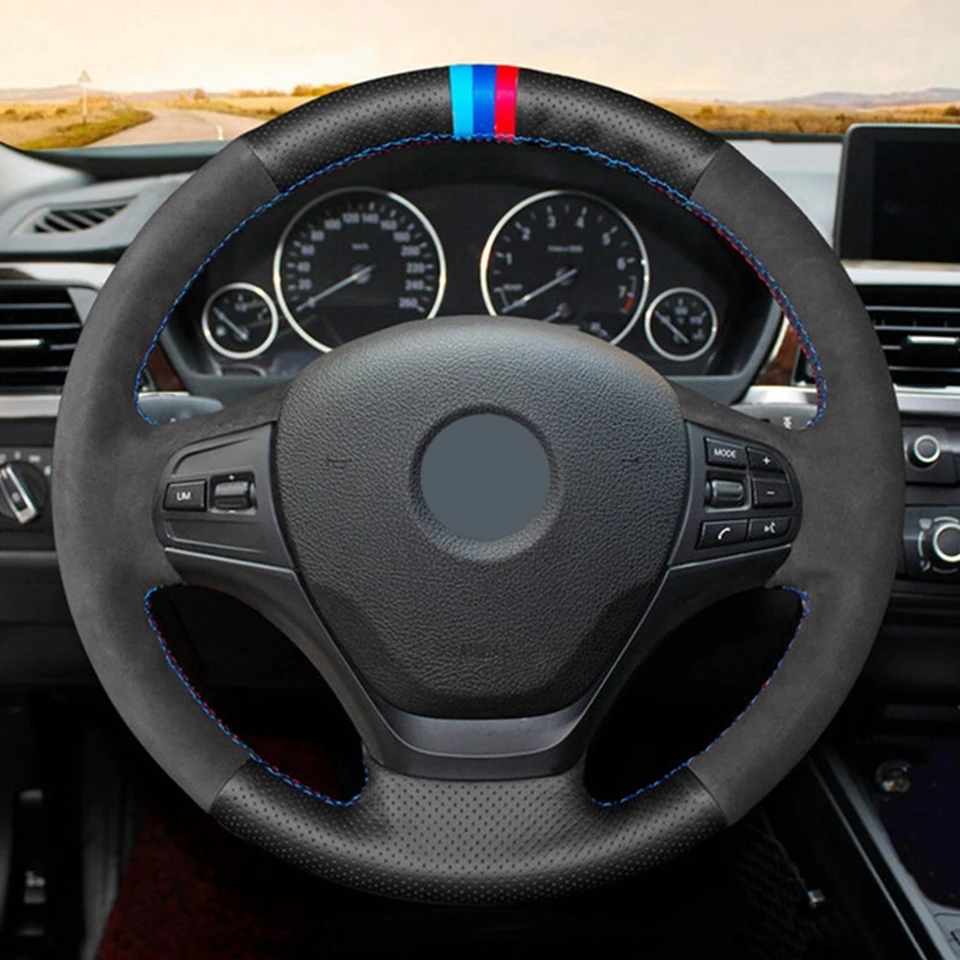 DIY черная замша чехол рулевого колеса автомобиля для BMW M Sport 3...