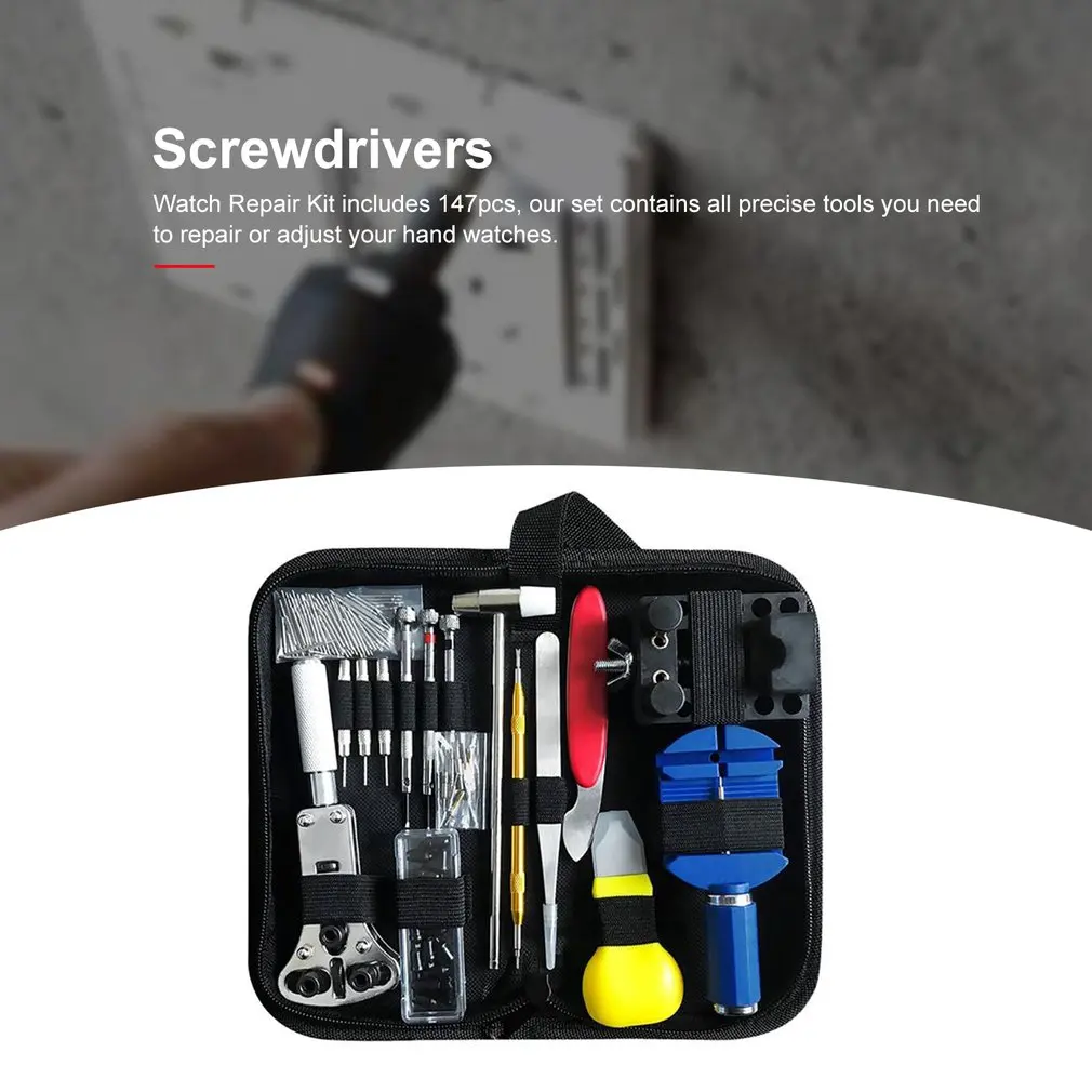 147 шт. набор инструментов для ремонта часов инструмент для снятия штифта для часов открывалка для открывания корпуса пружинный инструмент для снятия штифтов набор инструментов для ремонта