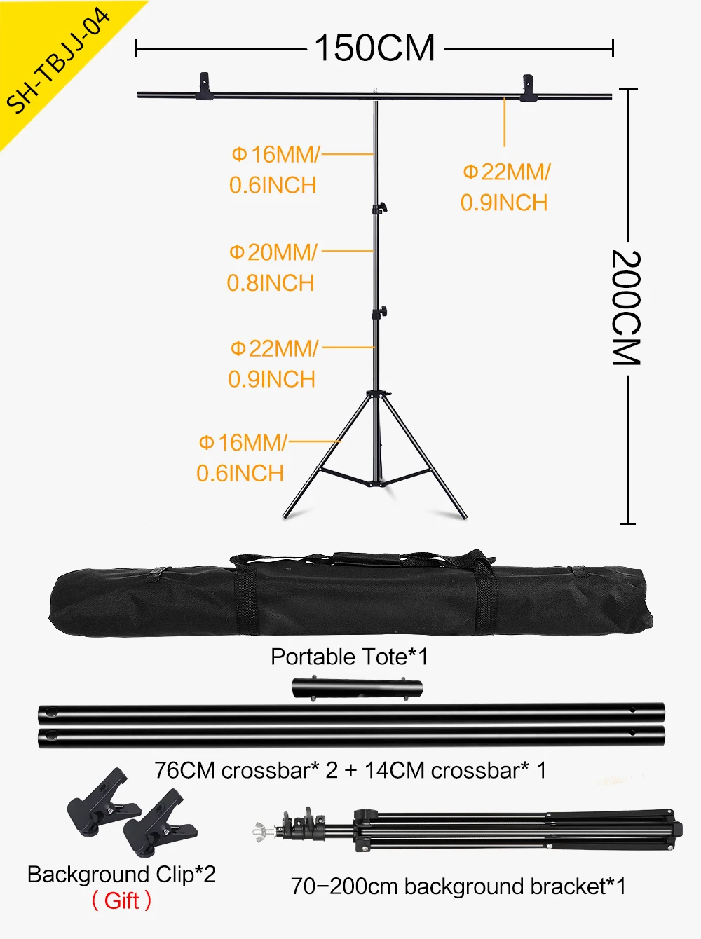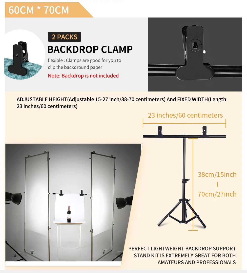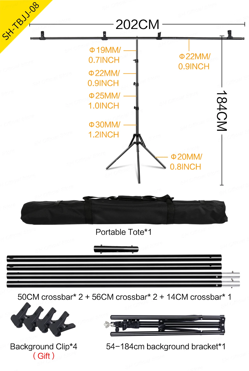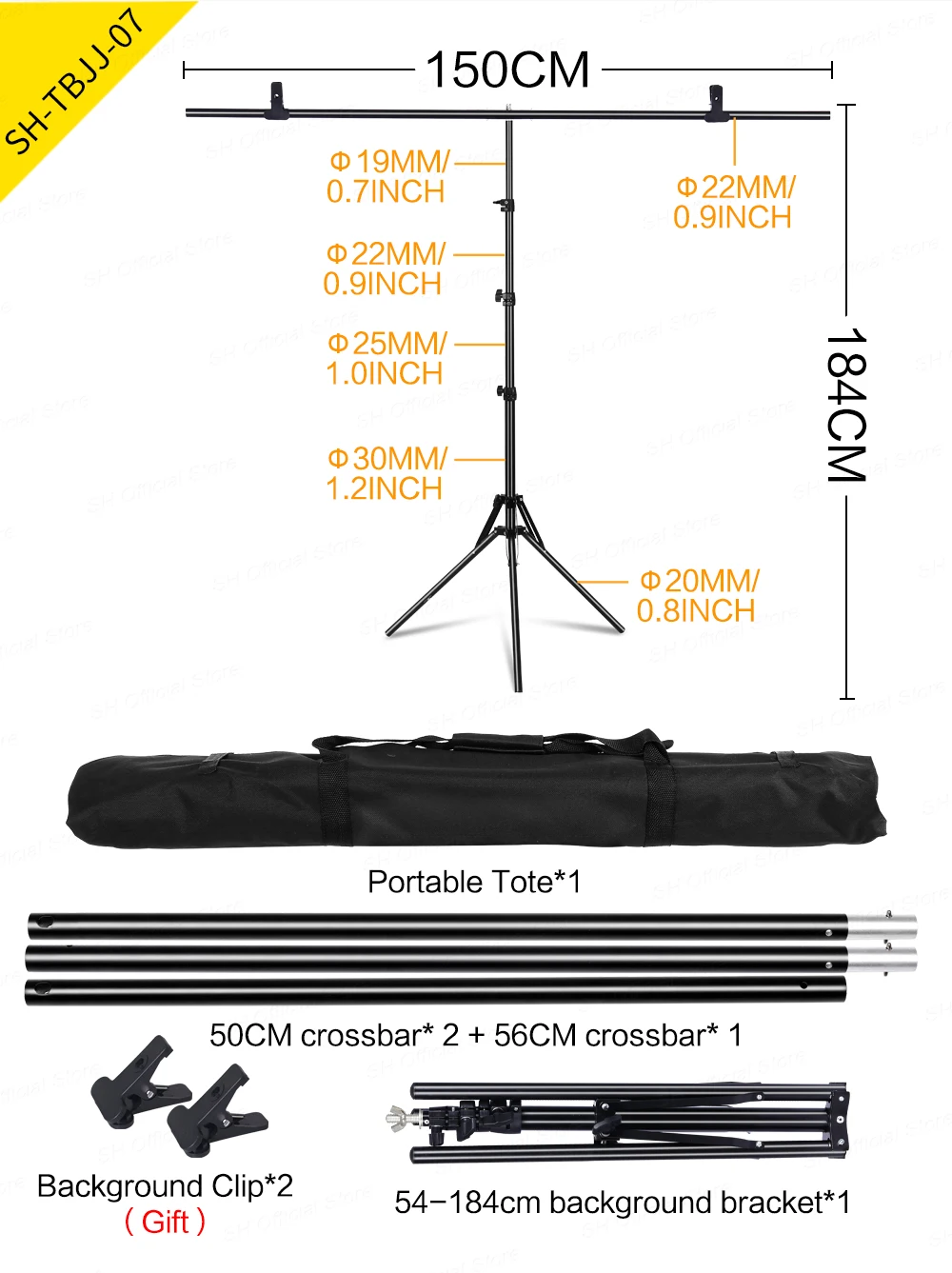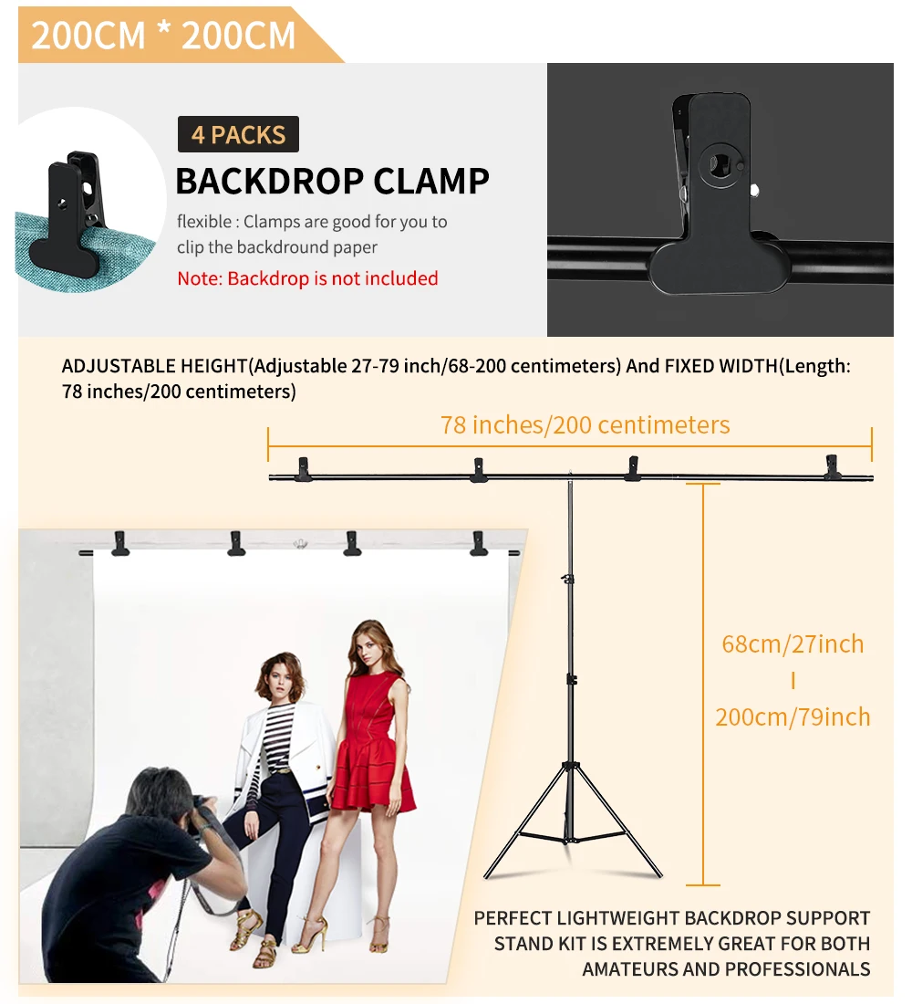 Подставка для фона портативная Т-образная, ширина 6,5 фута, регулируемая, с пружинными зажимами