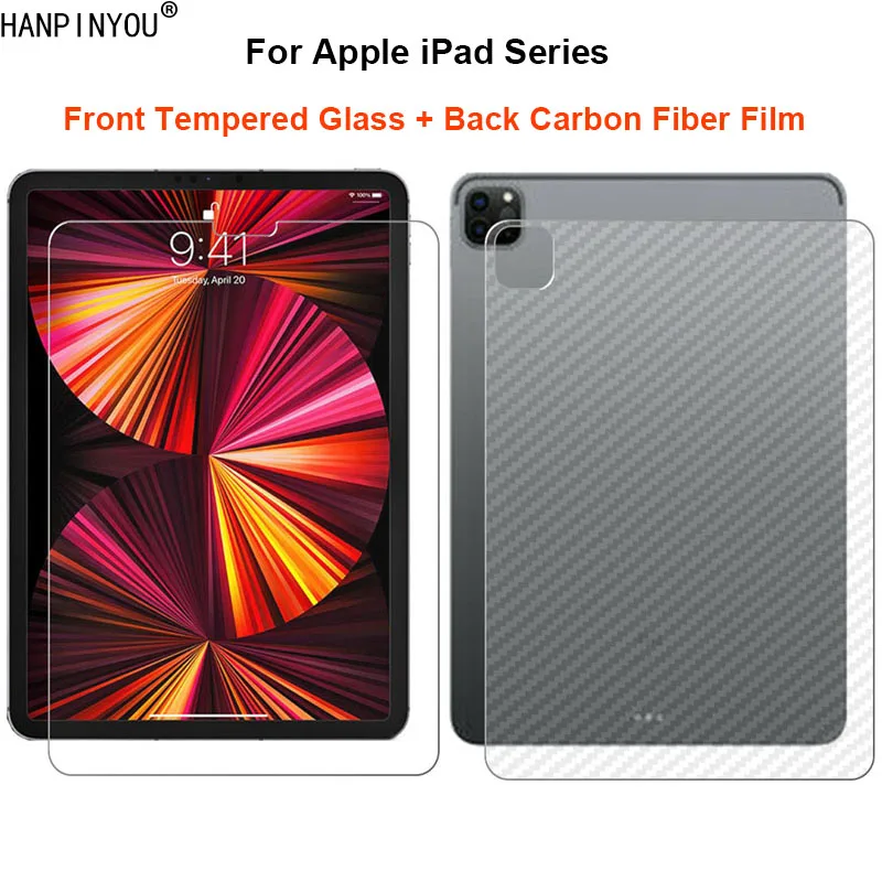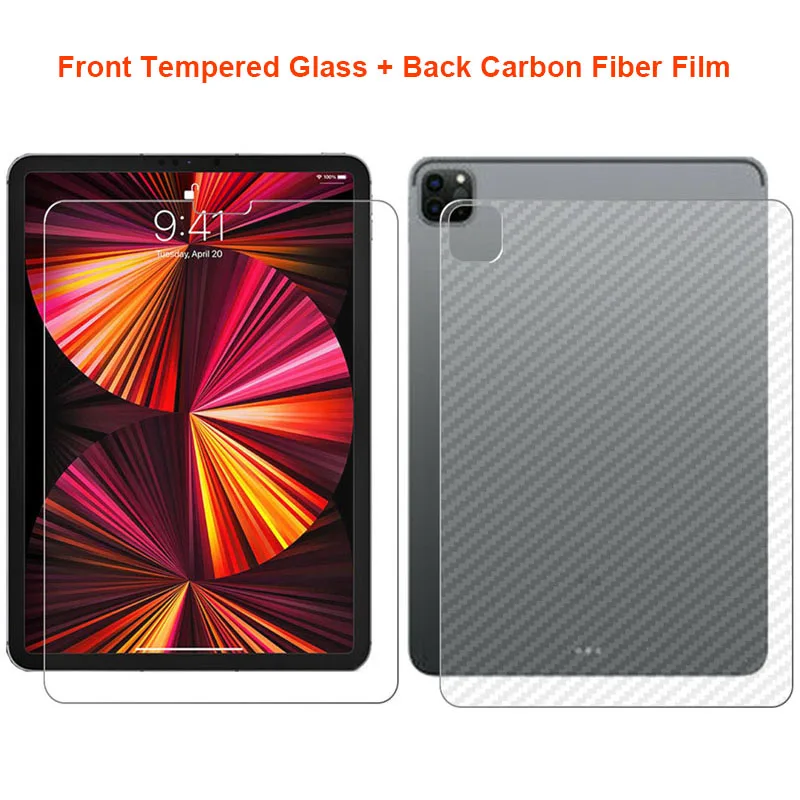 Для Apple iPad Pro 11 12,9 10,2 Air 4 (2021) (2020) 1 комплект = мягкая задняя пленка из углеродного волокна + закаленное стекло, передняя защита экрана