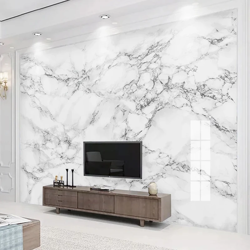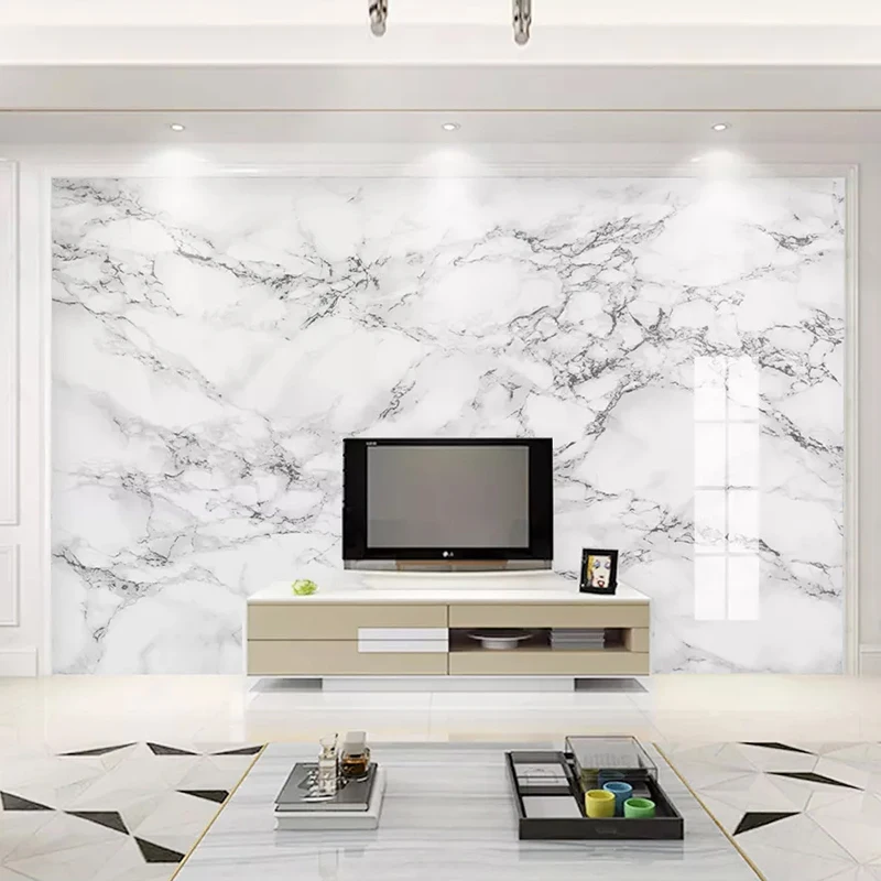Настенные фрески по фото по индивидуальному заказу, Современные Абстрактные Художественные белые мраморные рисунки для гостиной, фона за телевизором, водонепроницаемые холсты, живопись на стену
