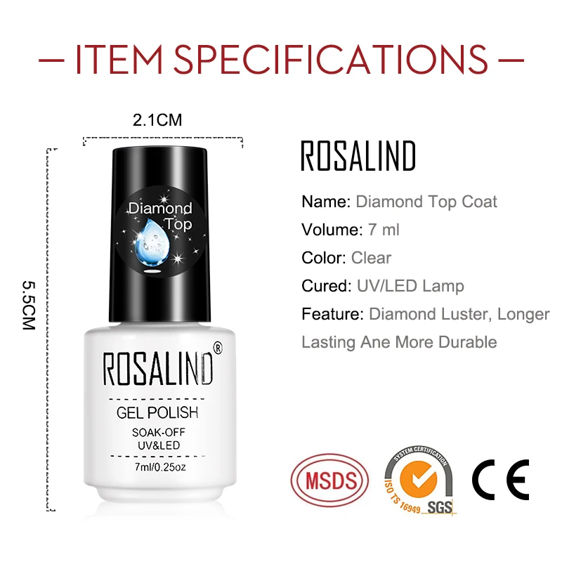 Гель-лак ROSALIND, Алмазное верхнее покрытие, УФ-лампа, 7 мл, стойкий Гель-лак для маникюра, праймер