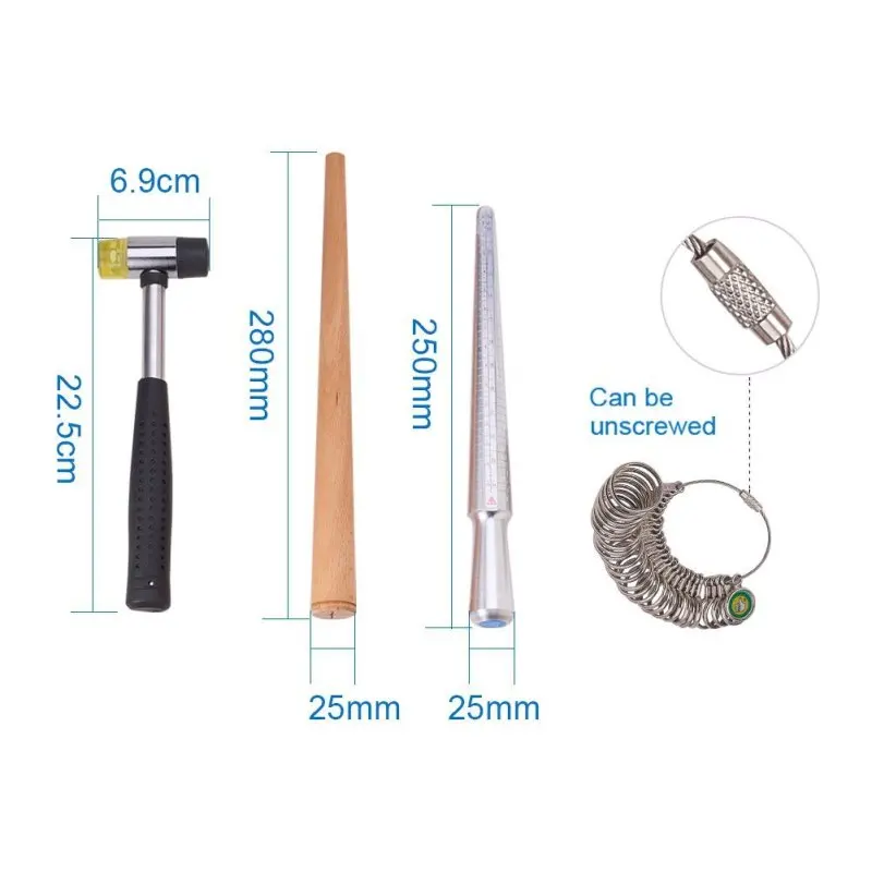 Набор инструментов для измерения колец, устанавливаемые двухсторонние резиновые молотки, сизеры для деревянных колец, профессиональная модель инструментов для изготовления ювелирных изделий F60