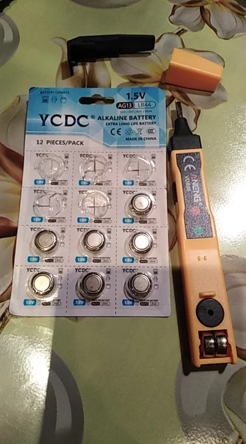 Хороший инструмент, работает со звуком и индикатором. Батарейки в комплект не входят. Отправляю фото батарейки, которая у меня работает. Ещё хотел сказать, батарейки нужно после использования вытаскивать, чтобы они не сели. Спасибо продавцу!
