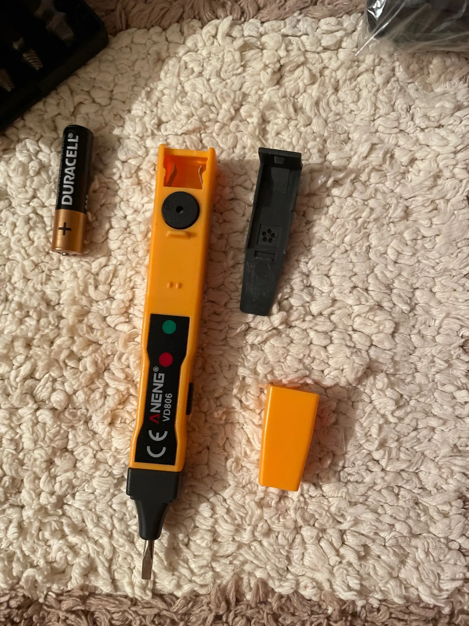Заказ пришел очень быстро. Соответствует описанию. Батарейки нет, чтоб добраться до батарейного отсека, надо приподняь клипсу и сдвинуть назад. У меня аккуратно не получилось, сломал обе направляющие. Так что будте осторожнее и аккуратнее. Чутье не высокое, но за такие деньги не стоило ожидать большего, покупал на замену старого советского пробника отвертки (прослужил около 40 лет!). Посмотрим, сколько этот проходит?
