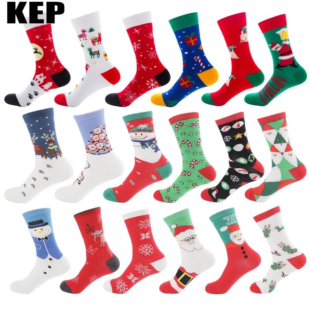 Осенне-зимние новые мягкие теплые рождественские носки из чесаного хлопка для женщин и мужчин, пара новогодних носков с изображением Санта-Клауса и елки с изображением снежного лося, подарки