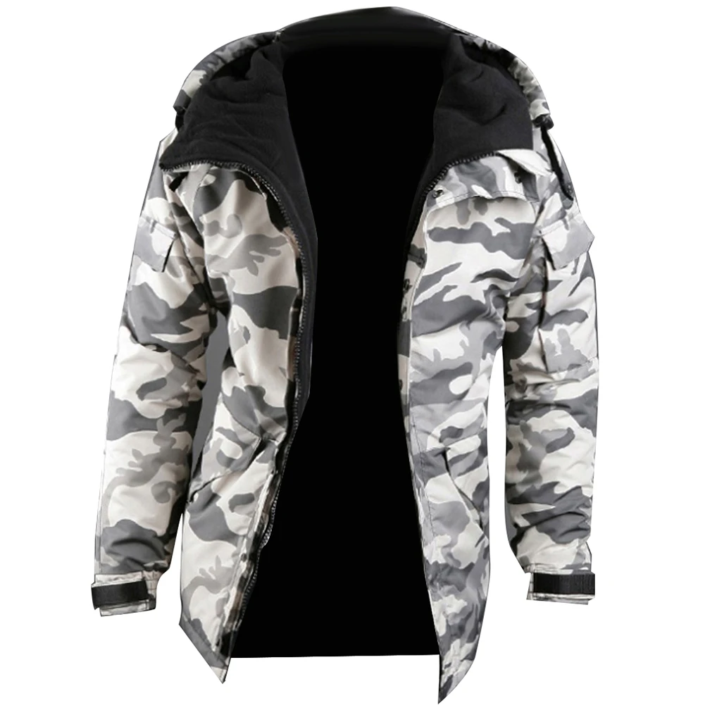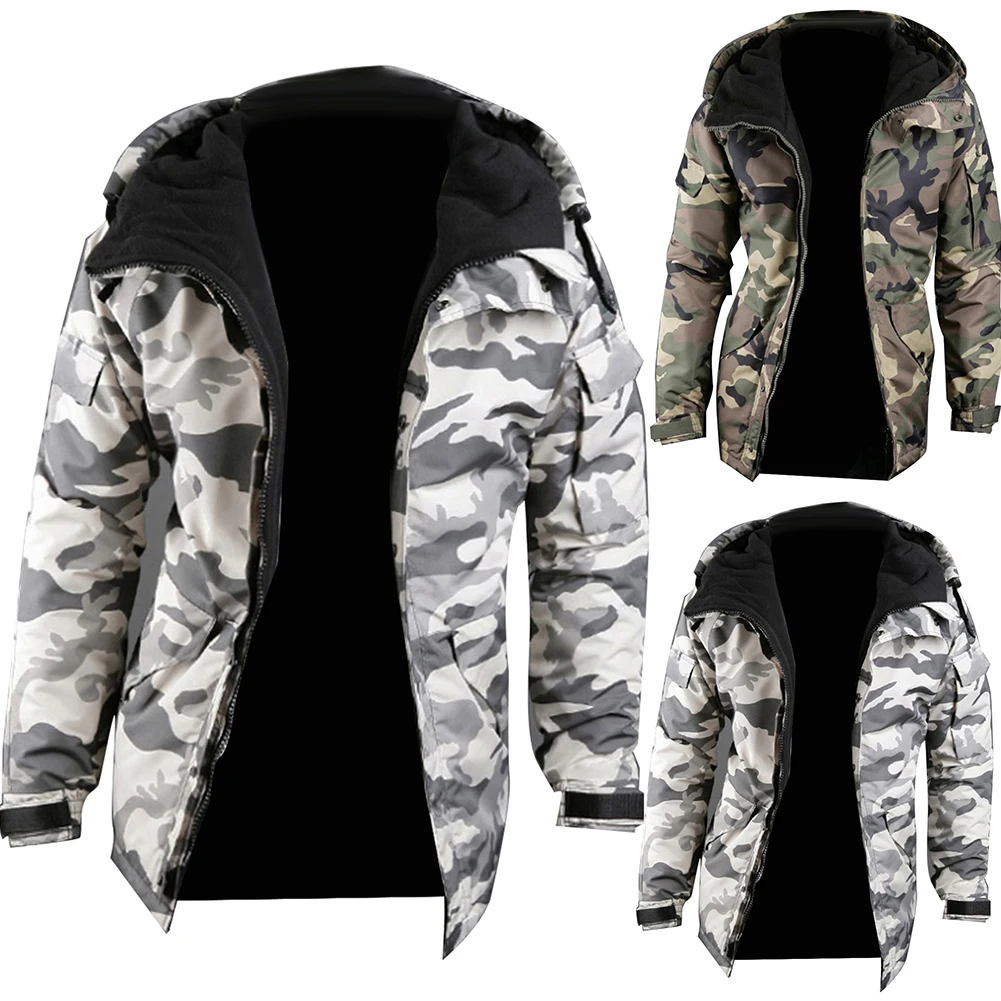 Модная зимняя теплая мужская куртка, утепленная камуфляжная куртка с карманами и принтом, пальто на молнии с длинным рукавом для мужчин, одежда