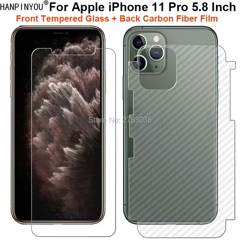 Для Apple iPhone 11 / Pro 5,8 "1 комплект = мягкая задняя пленка из углеродного волокна + Ультра тонкая защитная пленка из закаленного стекла Премиум-защитная пленка для переднего экрана