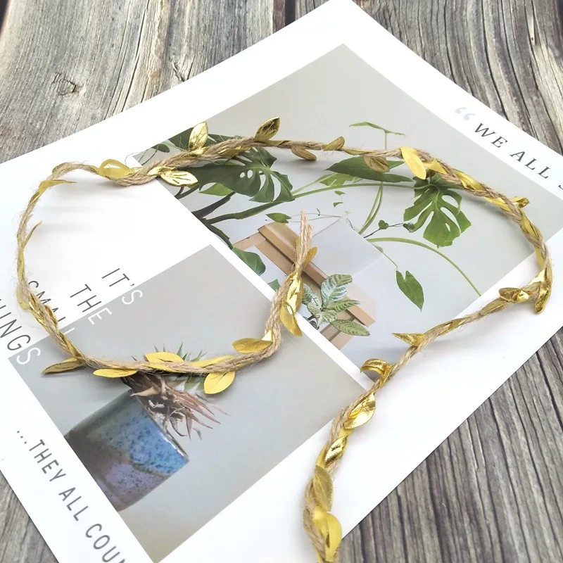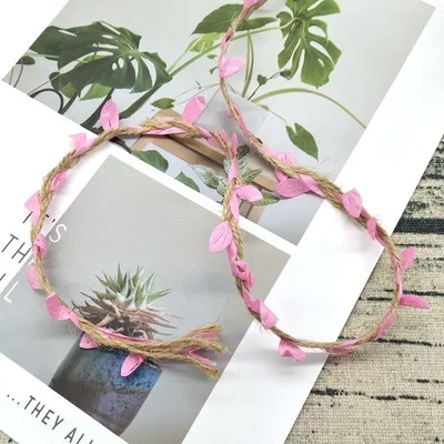 Плетеная пеньковая веревка с зелеными листьями, для самостоятельного изготовления украшений на свадьбу, день рождения, свадьбу, подарок из ротанга, упаковка букета веревка 5 мм, 1 год, 5 лет
